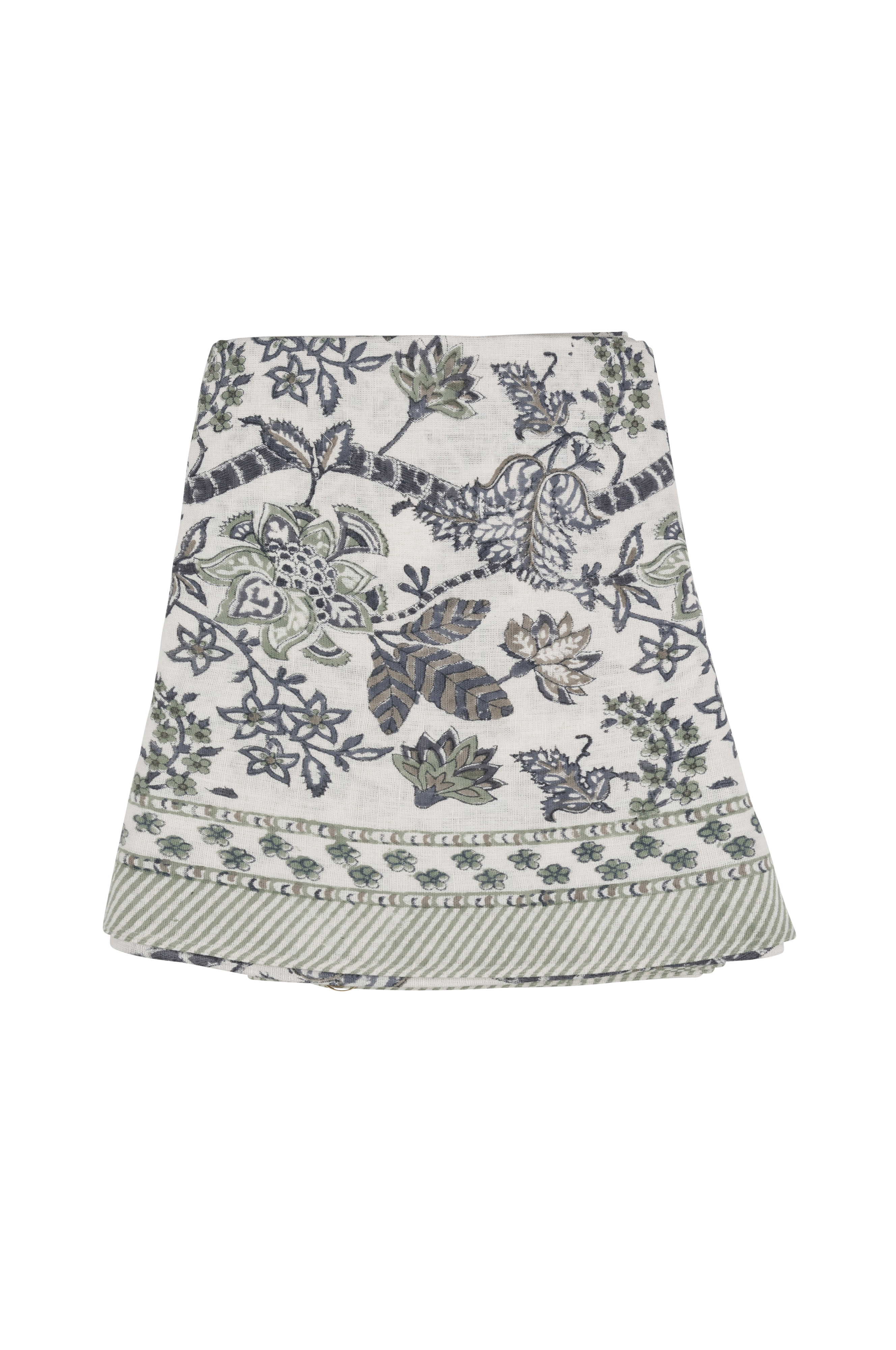 Smuk hørug med håndtrykt mønster i traditionel indisk blokprintteknik. Et unikt håndværk som giver mønstret et levende og dekorativt udtryk.