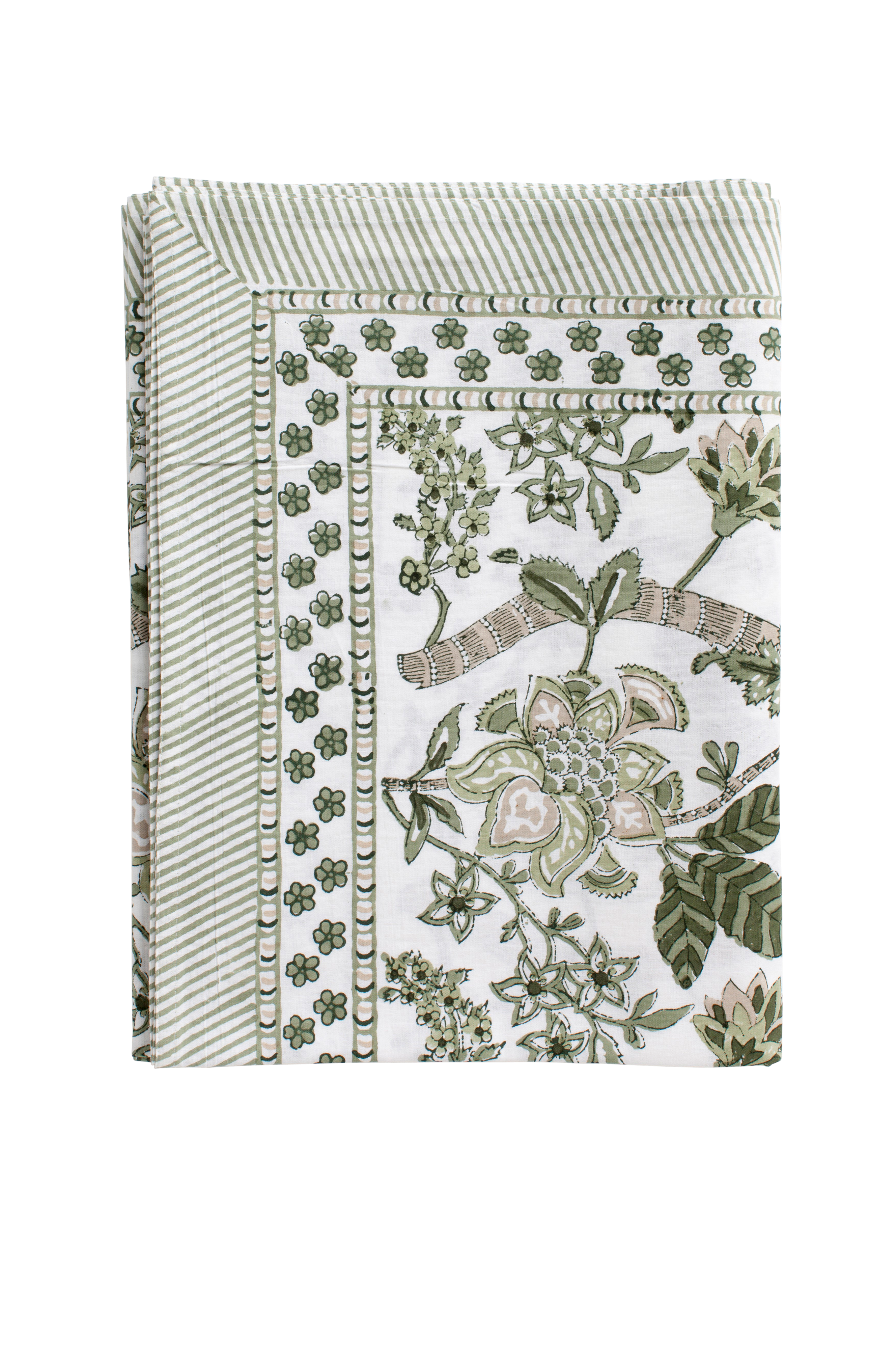 Smuk hørug med håndtrykt mønster i traditionel indisk blokprintteknik. Et unikt håndværk som giver mønstret et levende og dekorativt udtryk.