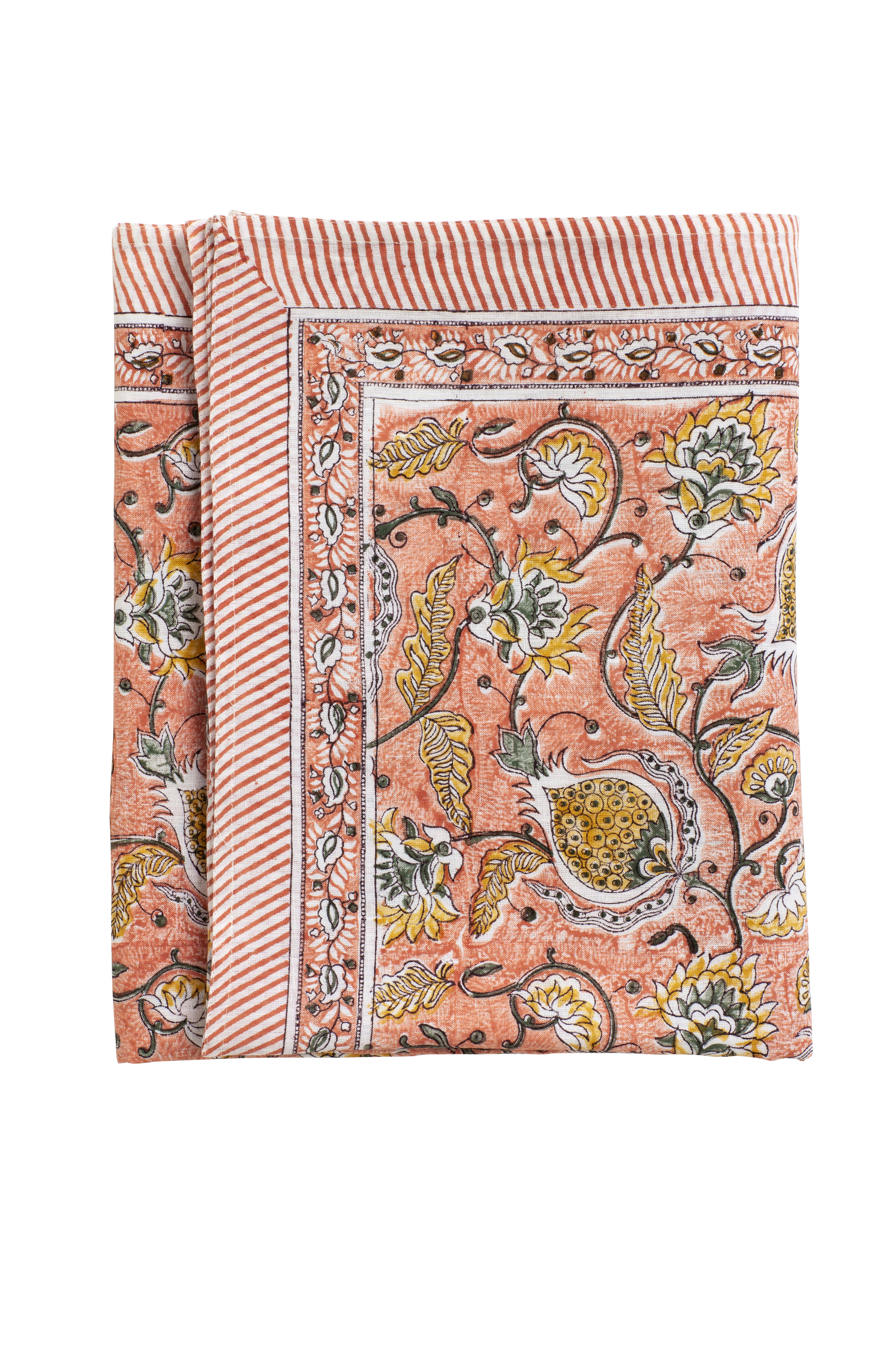 Eksklusiv hørdug fra brandet Chamois med et elegant og eksotisk mønster. Mønstret er trykt i hånden i traditionel indisk blokprintteknik. Et unikt håndværk som giver dugen et levende og dekorativt udtryk.