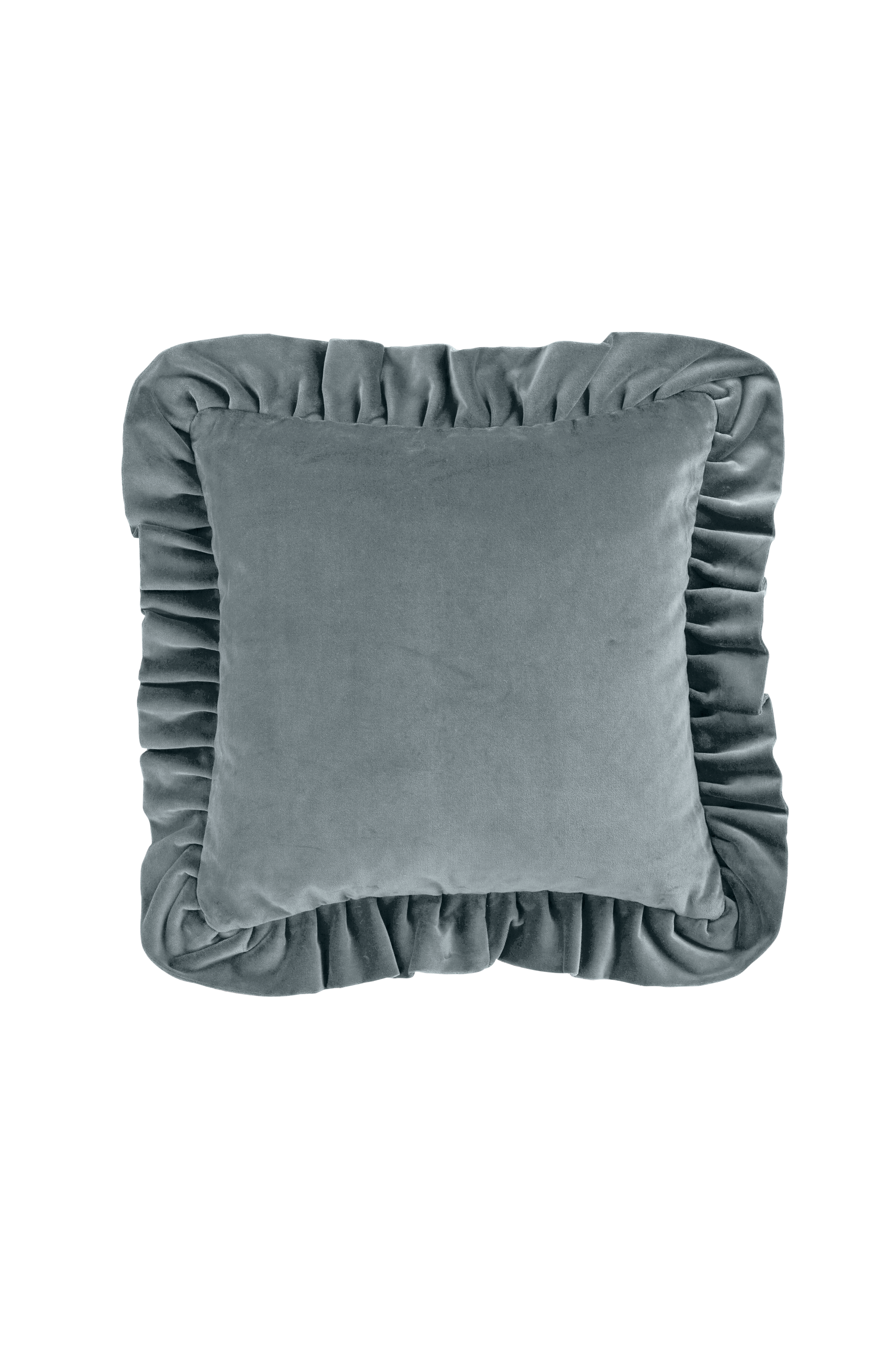 Et luksuriøst pudebetræk fremstillet af kraftigt bomuldsfløjl med en generøs og dekorativ flæse langs kanten. 45x45 + 7 cm flæse