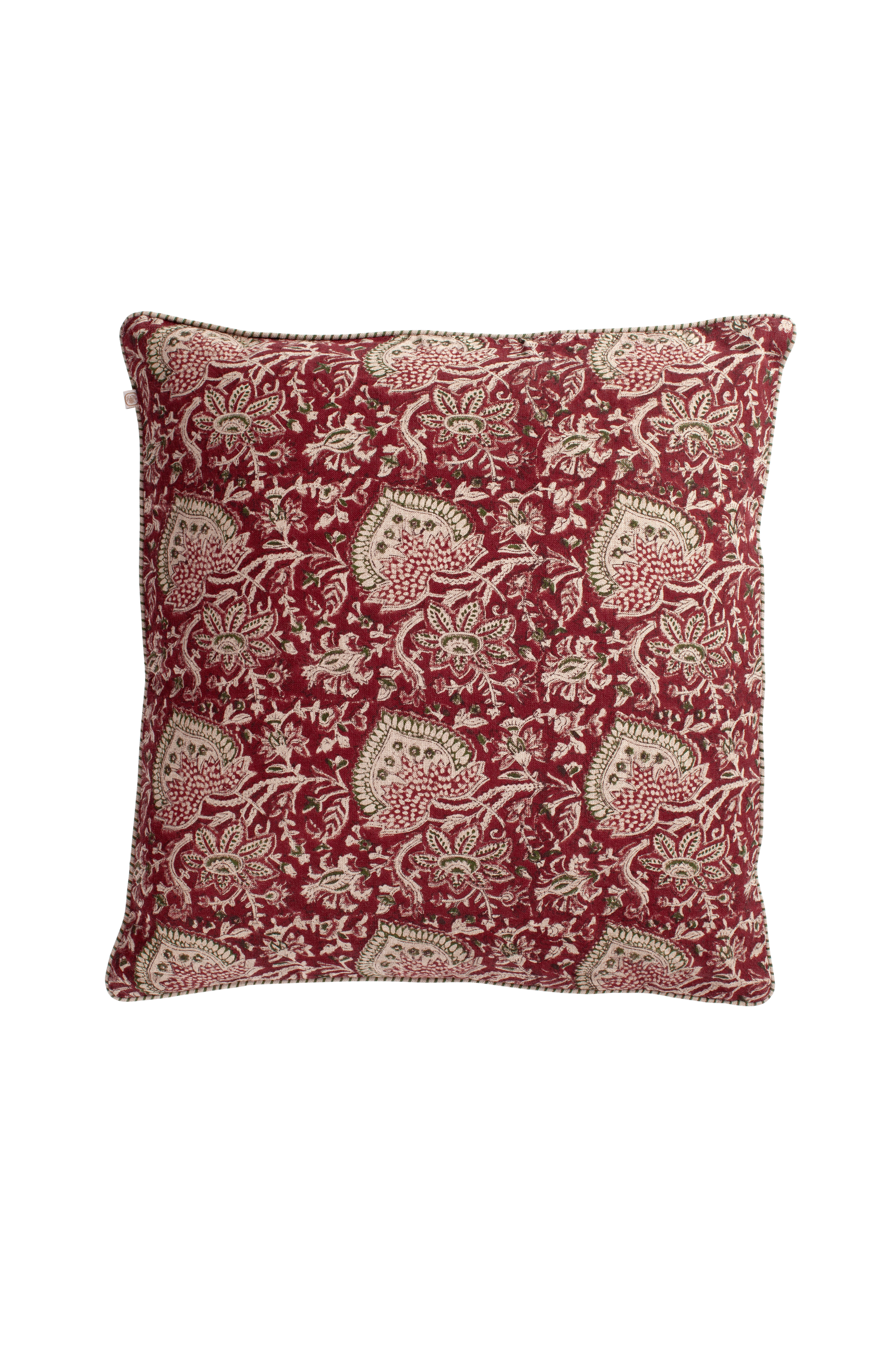 Eksklusivt pudebetræk i hør med smukt mønster i flere farver. Mønstret er trykt i hånden i traditionel indisk blokprintteknik. Et unikt håndværk som giver pudebetrækket et levende og dekorativt udtryk. Pudebetrækket sælges uden monteringspude.