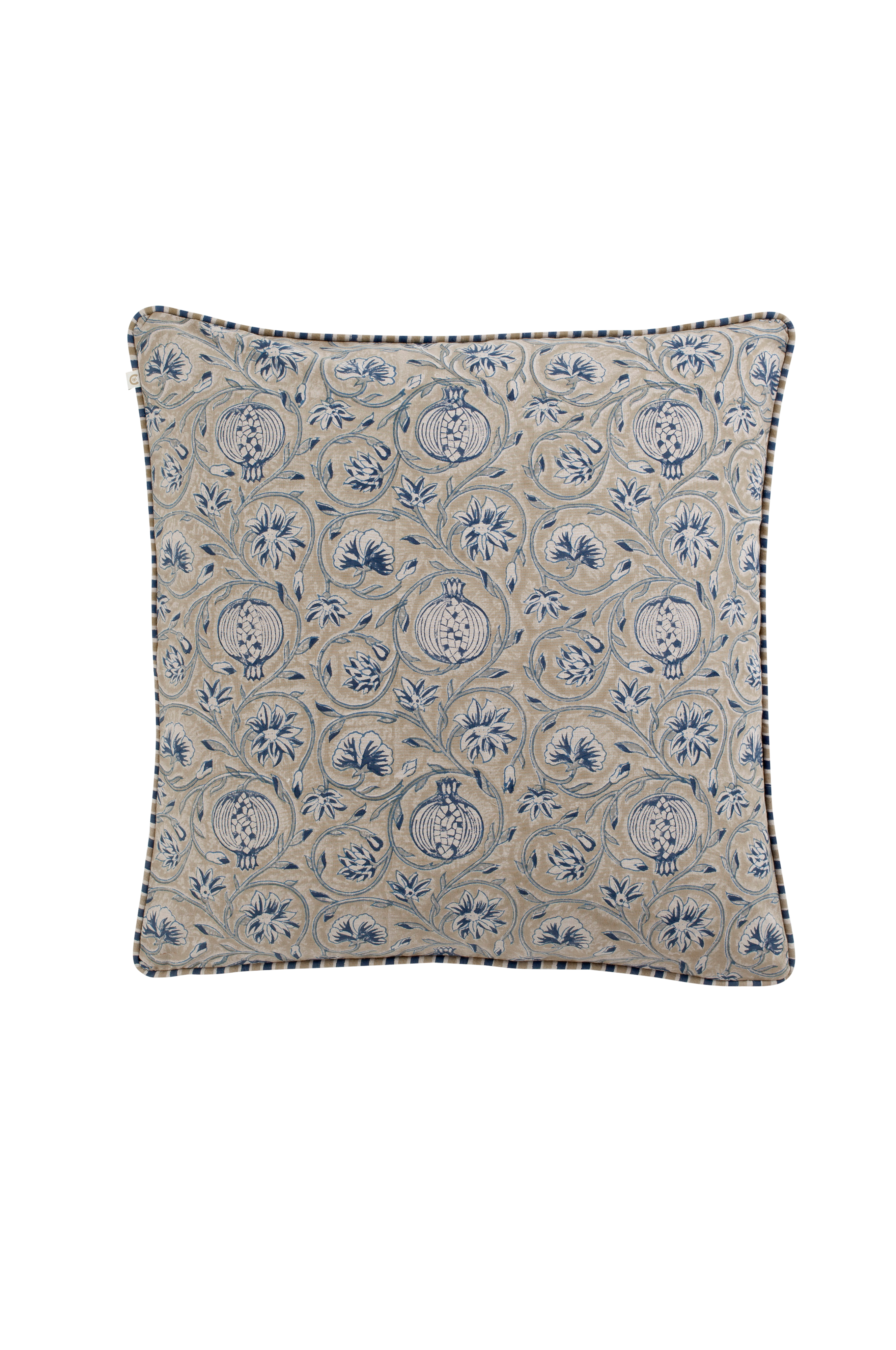 Et smukt pudebetræk i bomuld af høj kvalitet med et pomegranate -mønster. Mønsteret er trykt i hånden ved hjælp af traditionelle indiske bloktrykteknikker. Et unikt håndværk, der giver hvert tekstil et unikt og dekorativt udtryk. Vask dit pudebetræk på et kort (maks. 1 time) og skånsomt program for uld/silke med mildt vaskemiddel.