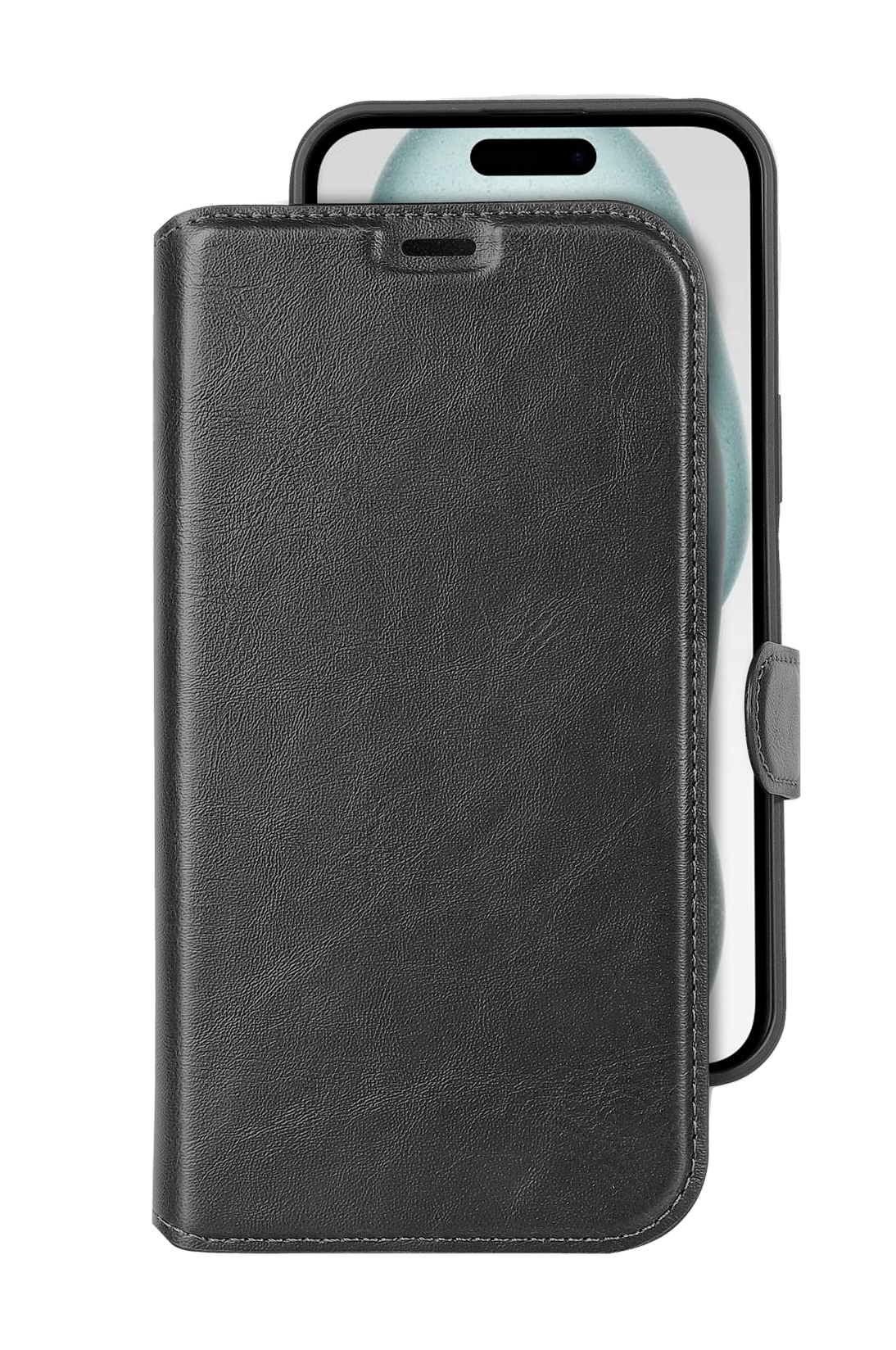 Mobilcover med tegnebog i slidstærkt kunstlæder til iPhone 15 Plus.