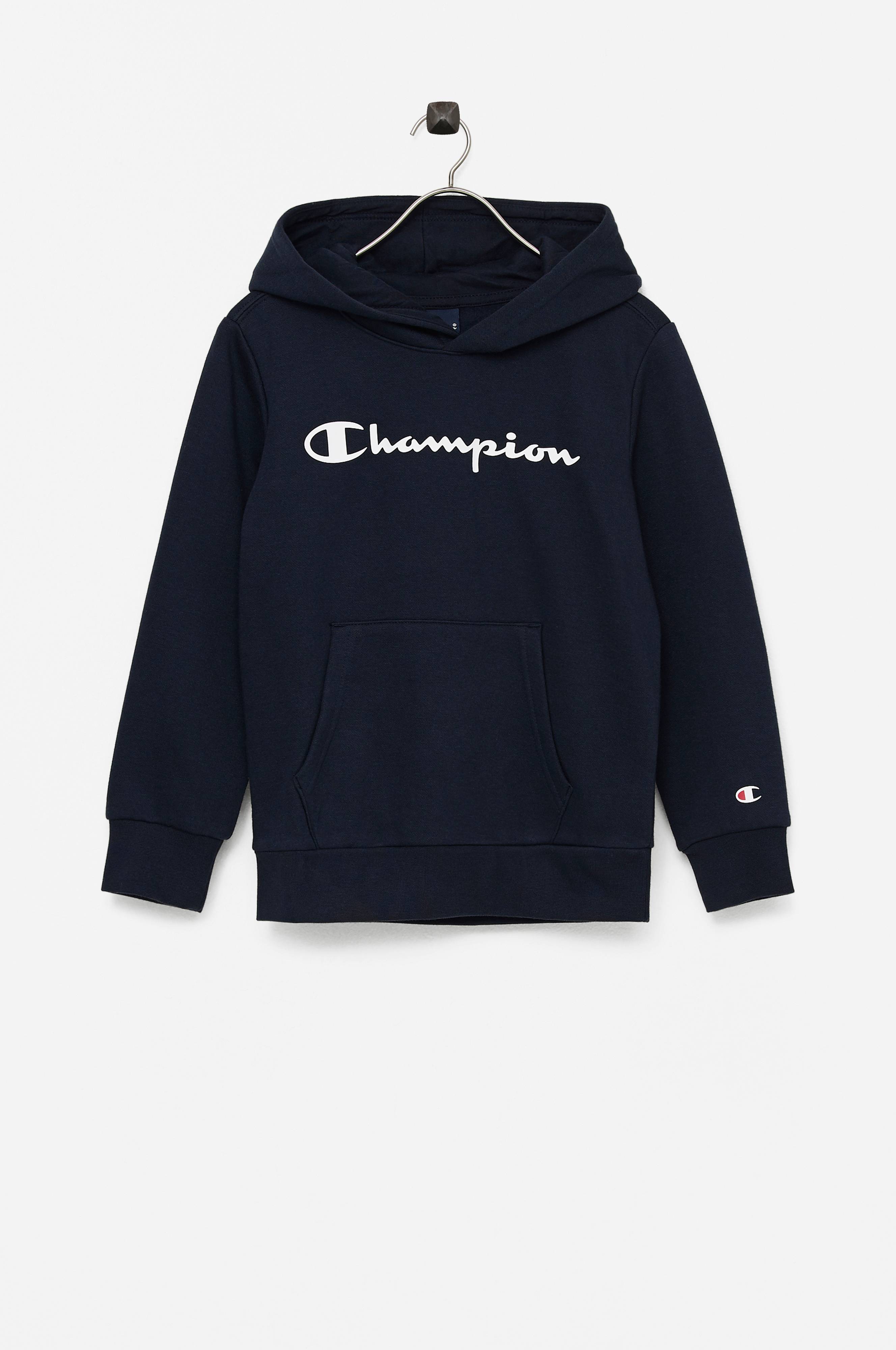 Hættetrøje Hooded Sweatshirt fra Champion med blød, børstet inderside. Foret hætte og gummiprintet logo foran. Kængurulomme. Rib i ærmekant og forneden.