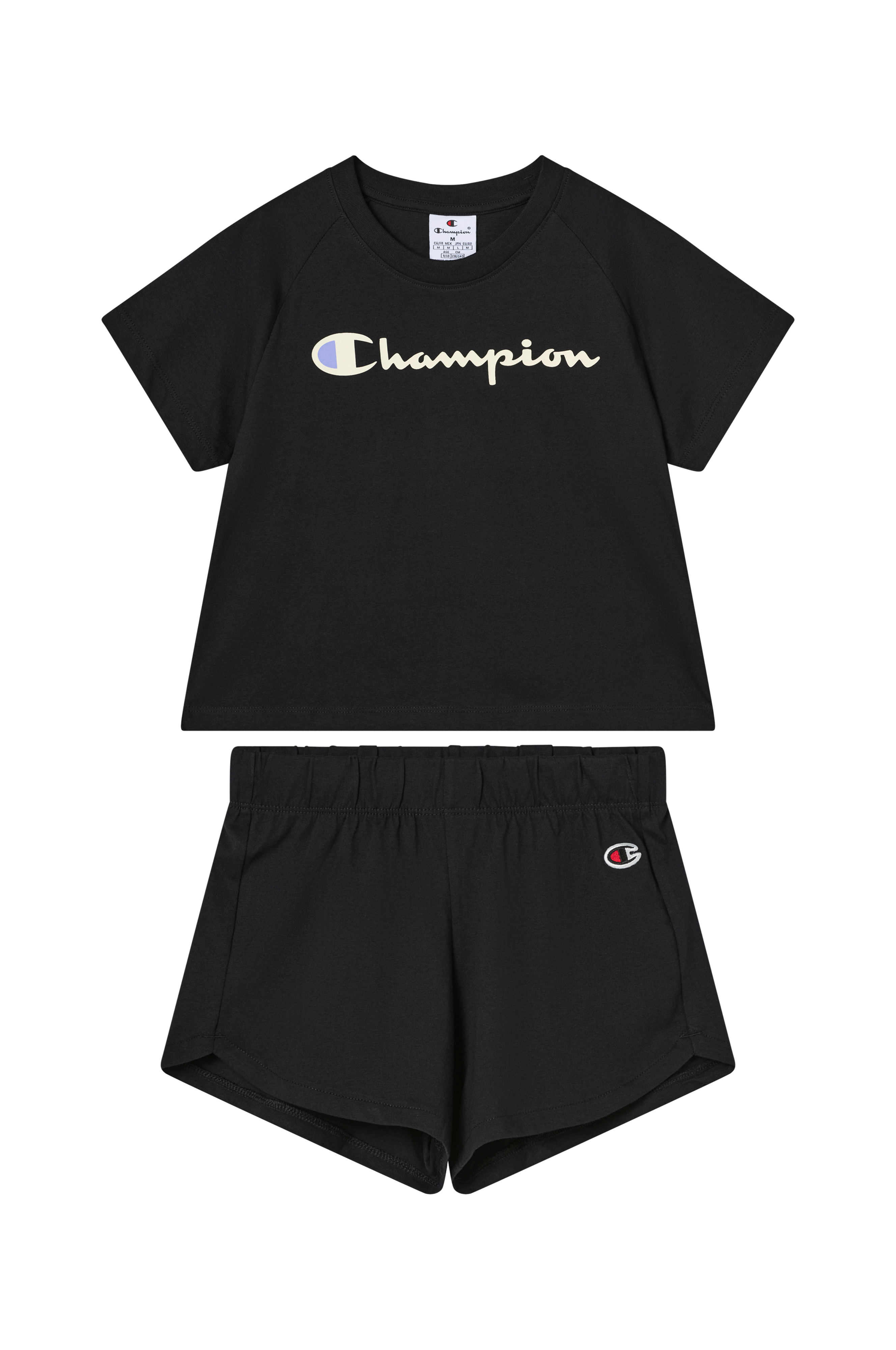 • 2-delt sæt i blød bomuld• T-shirt med rund hals• Tryk foran• Shorts med elastisk talje med indvendig træksnørre