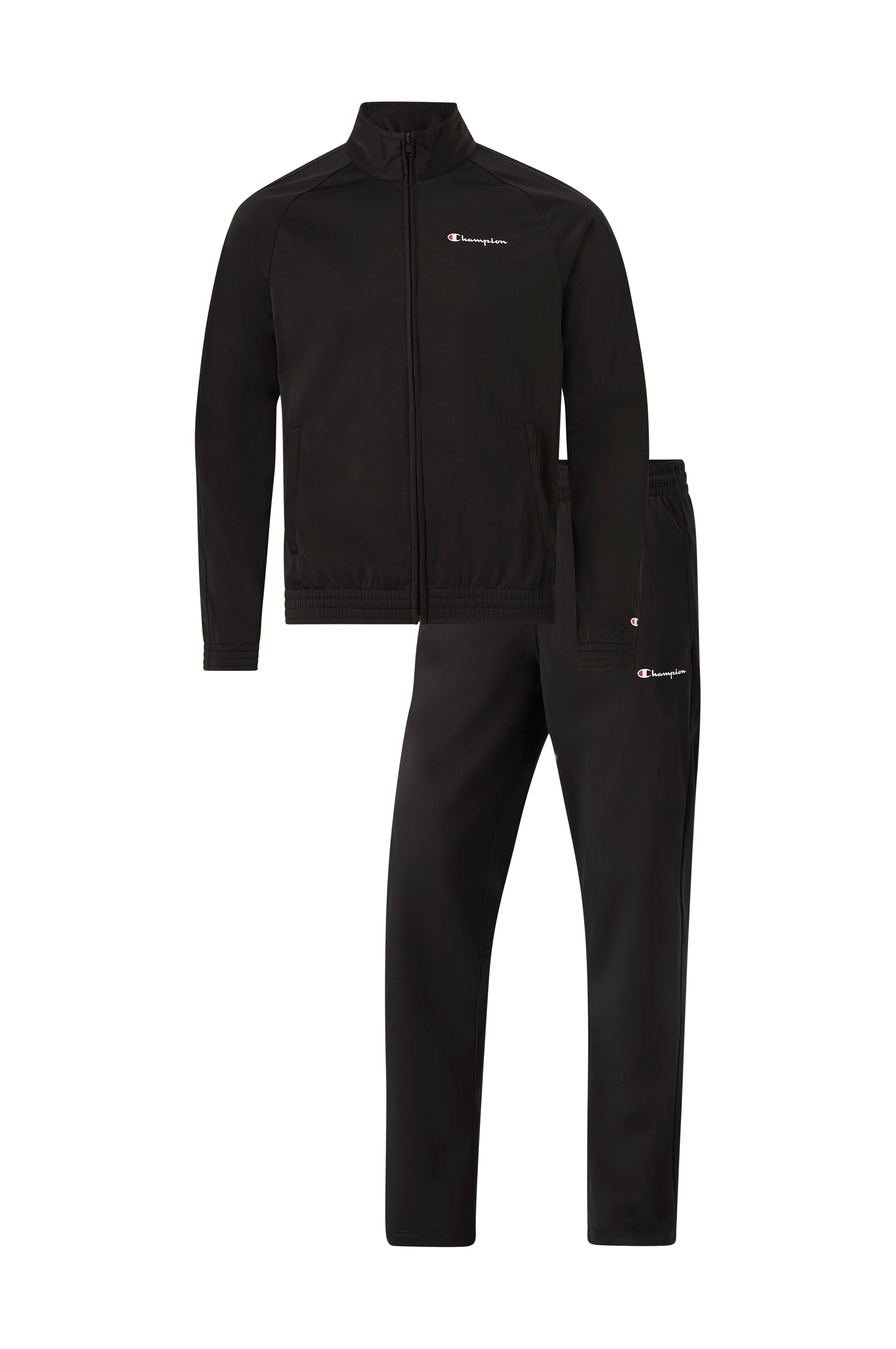 • 2-delt træningssæt • Jakke med opretstående krave og lynlås • To lommer • Raglanærmer • Elastisk bånd ved manchetterne og nederst • Bukser med elastisk talje og indvendig træksnørre • Sidelommer