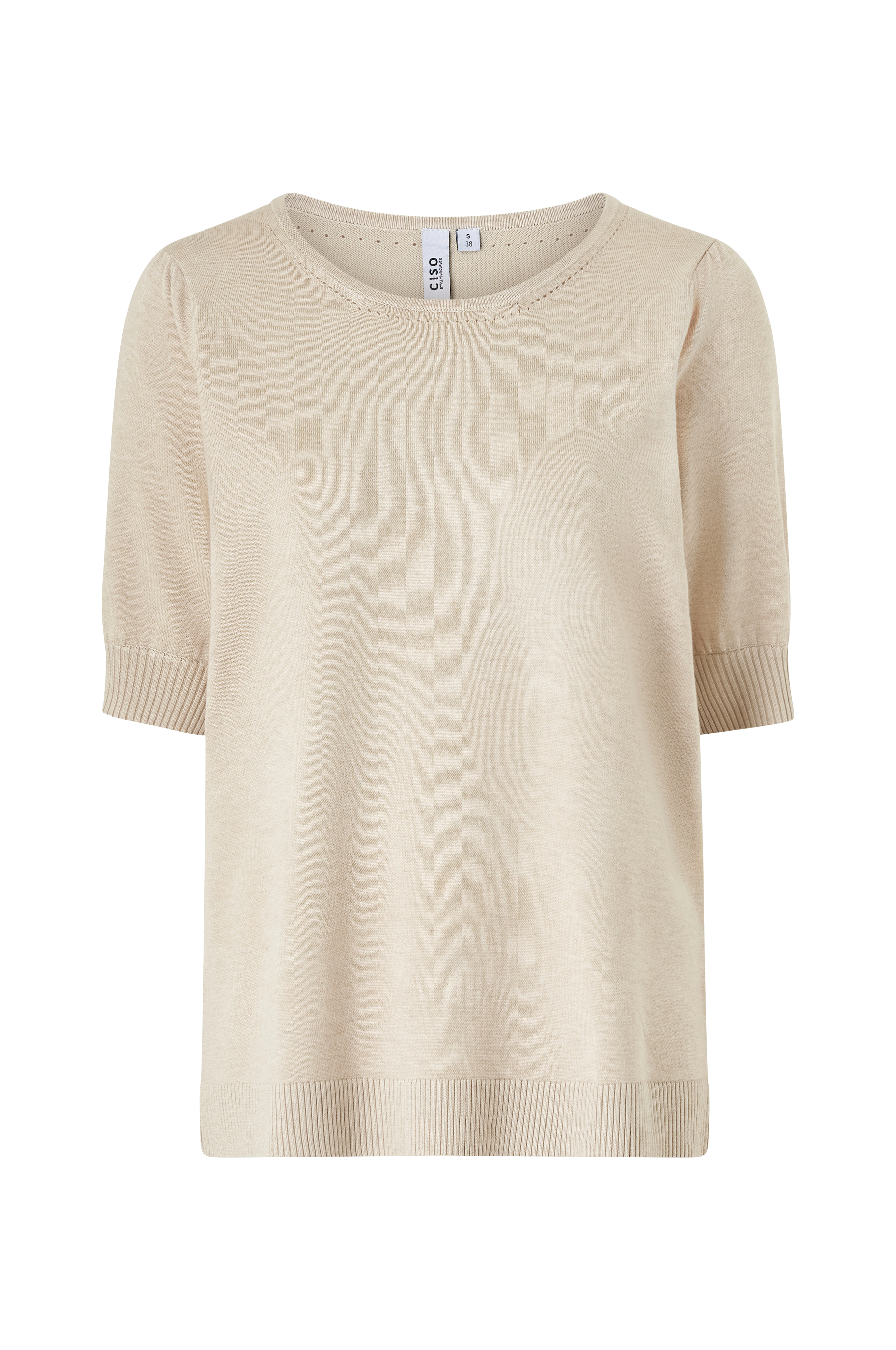 • Fintstrikket Pullover i viskoseblanding• Rund halsudskæring med hulmønster hele vejen rundt• Korte ærmer med ribstrikkede ærmeafslutninger• Ribstrikket søm