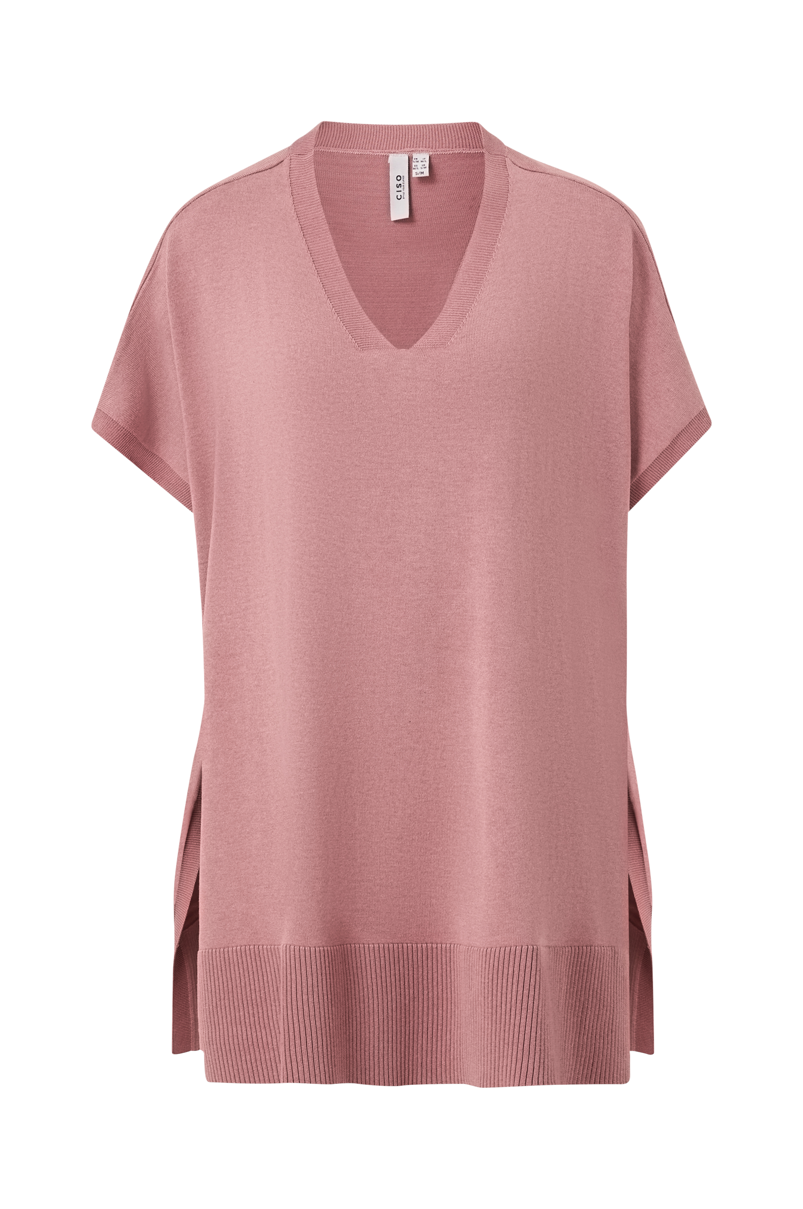 • Bred, lige model med åbne sider og en knap• V-formet halsudskæring med ribkanter• Bred ribstrik nederst