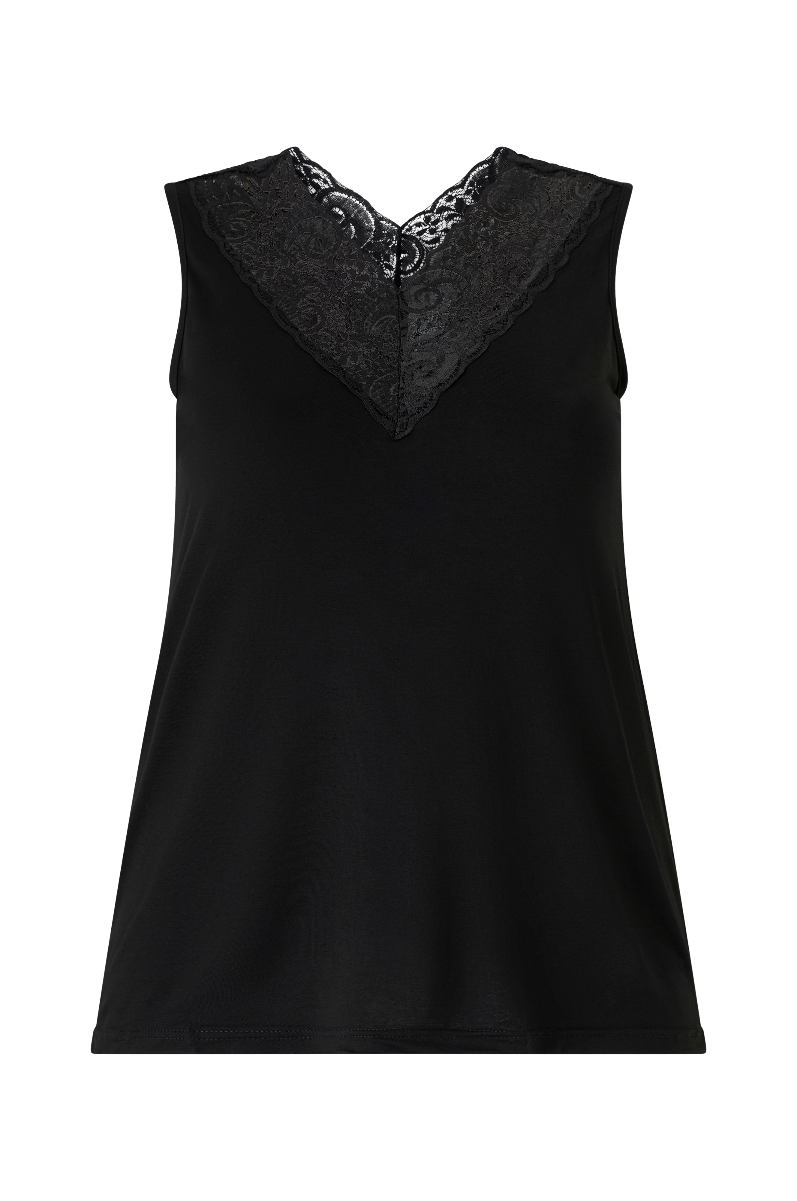 • Ærmeløs top i viskoseblanding• V-udskæring med dekorativ blonde• Plusstørrelser