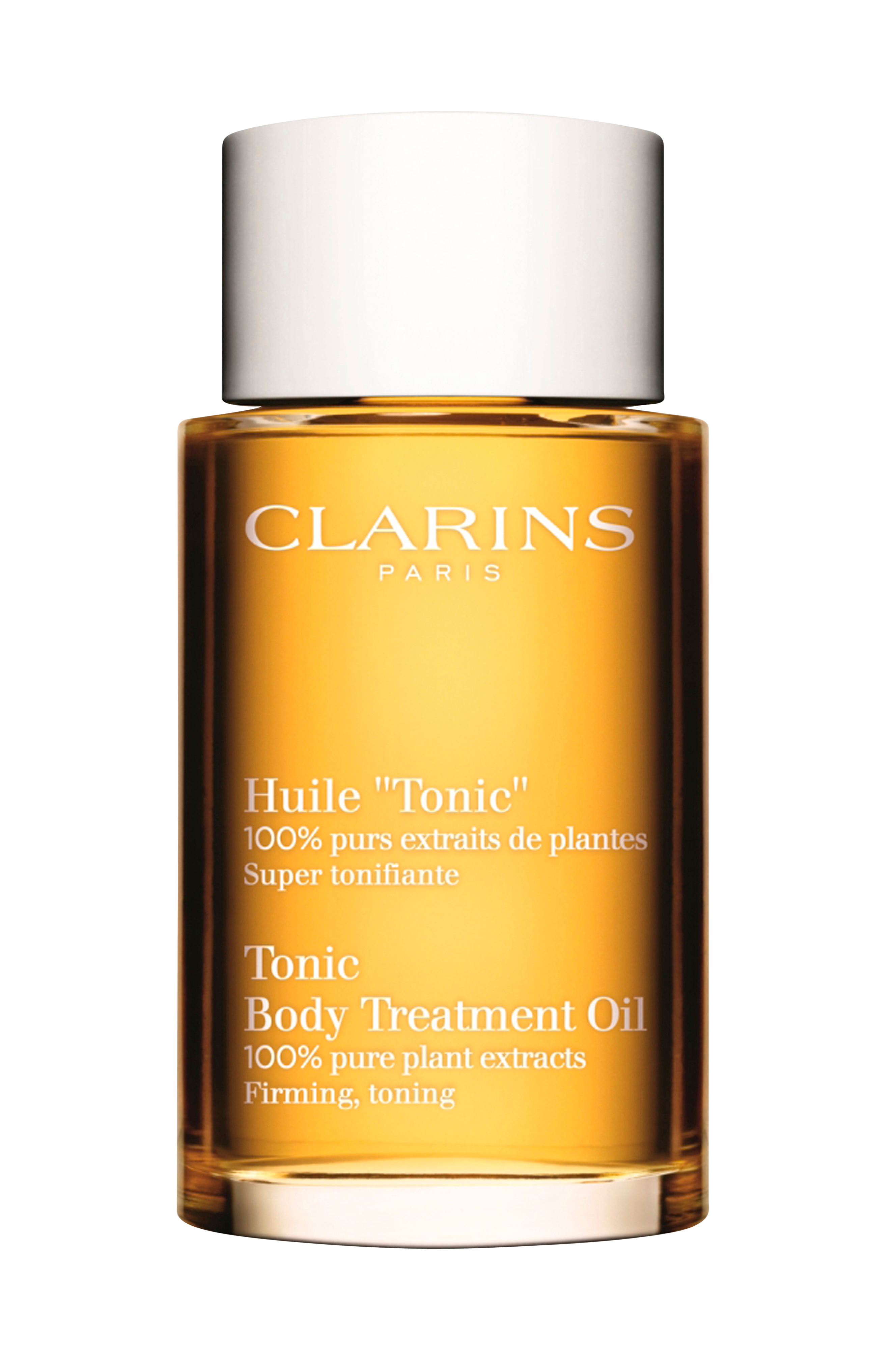 Tonic Body Treatment Oil er Clarins bedst sælgende, opstrammende kropsolie. Olien indeholder 100% rene og kraftfulde planteekstrakter - herunder rosmarin, geranium og mynte - som bidrager til øget fasthed og elasticitet samt forbedret elasticitet. Hasselnøddeolie låser fugt ind i huden og gør huden blød, silkeglat og smidig. Olien reducerer eksisterende strækmærker og modvirker desuden fremkomsten af nye, så den er perfekt til vægtændringer og graviditeter. Massering af olien øger også dit velvære, takket være at de gavnlige ingredienser også er behageligt aromatiske.
