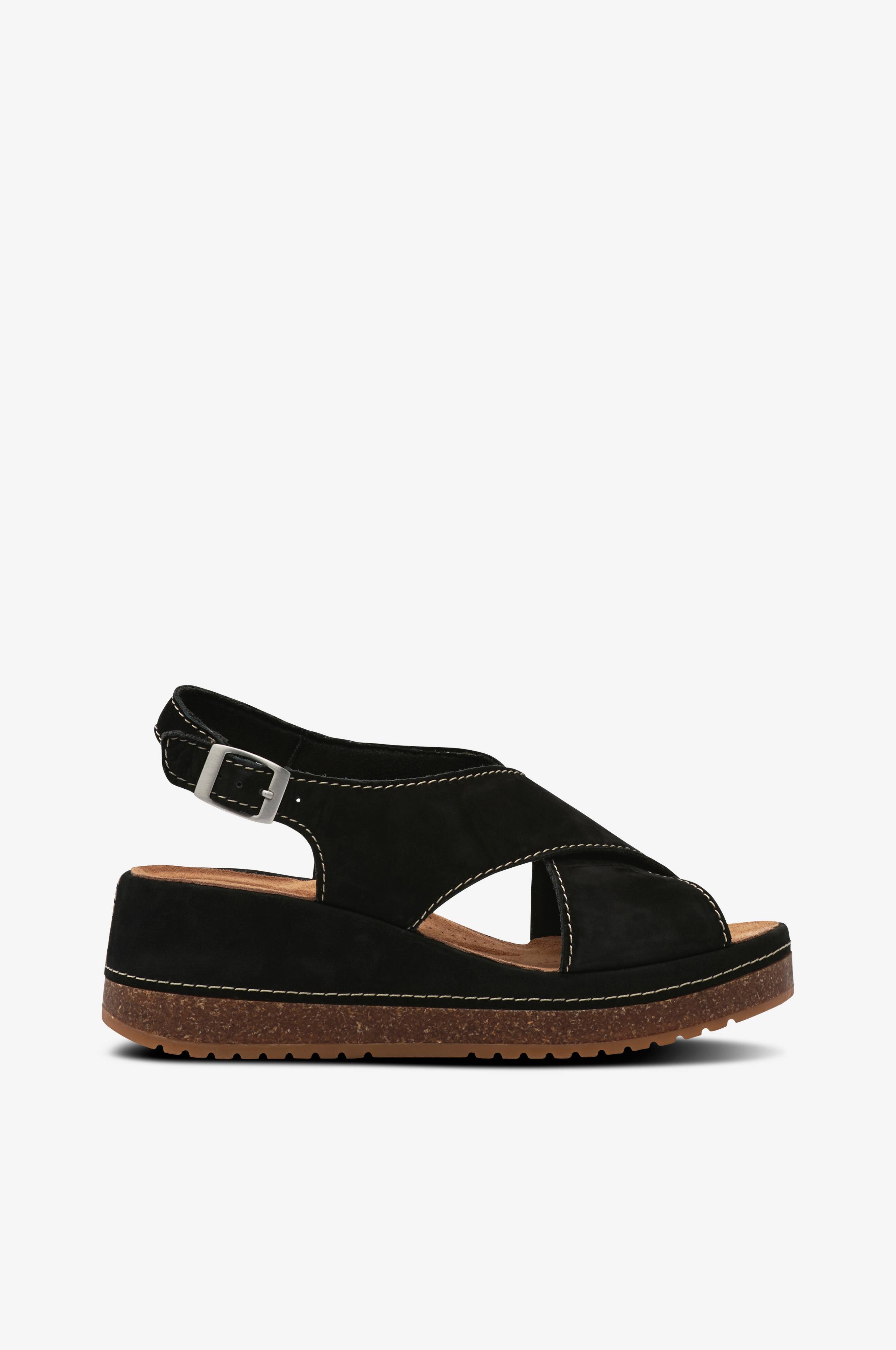 • Sandaler med wedgehæl• Krydsende remme i ruskind• Spænde ved anklen• Blød polstret indersål• Hælhøjde: 6 cm