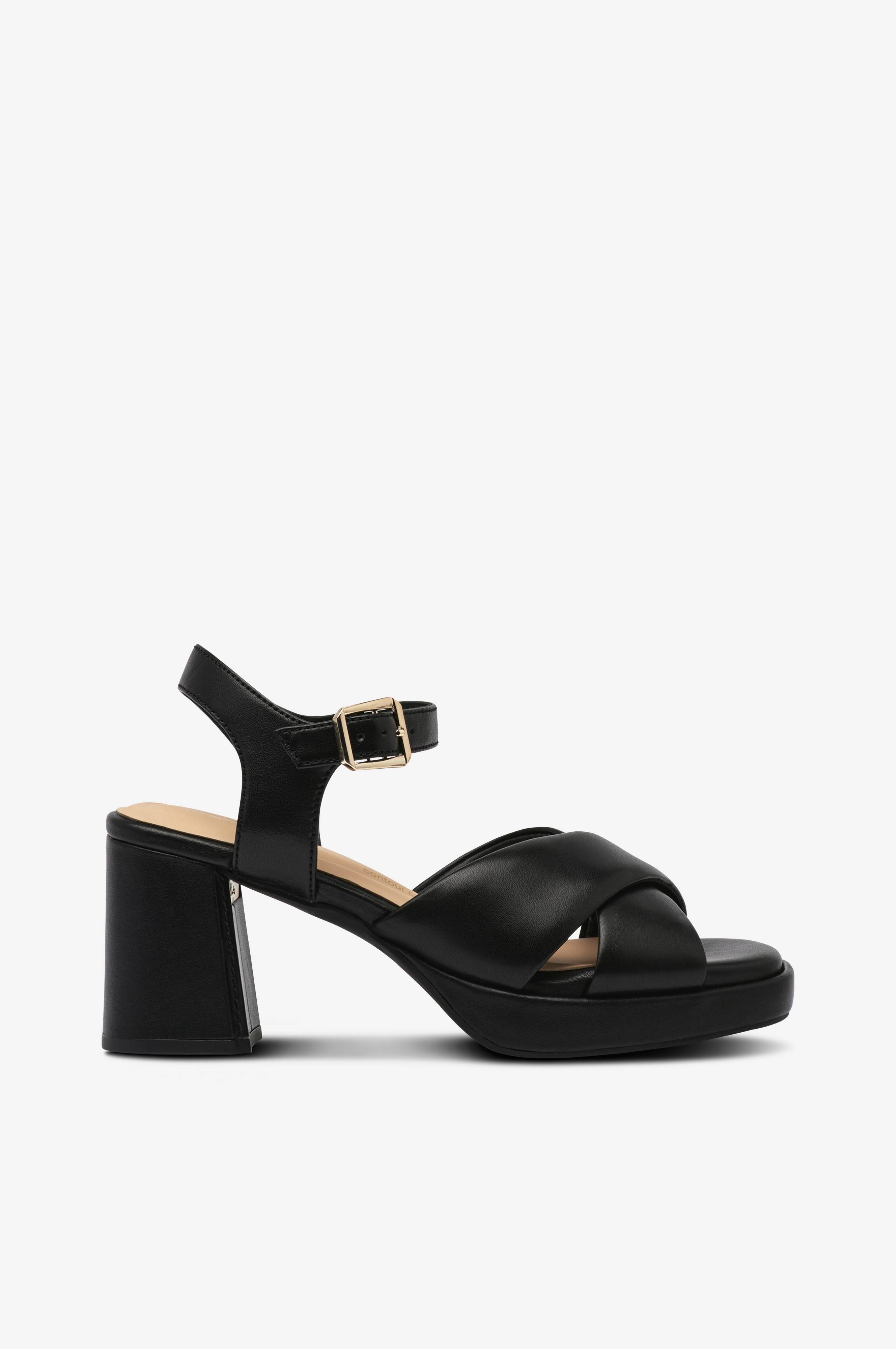 • Krydsende remme i læder• Justérbar rem ved anklen• Platformsål• Høj hæl• Hælhøjde: 8 cm