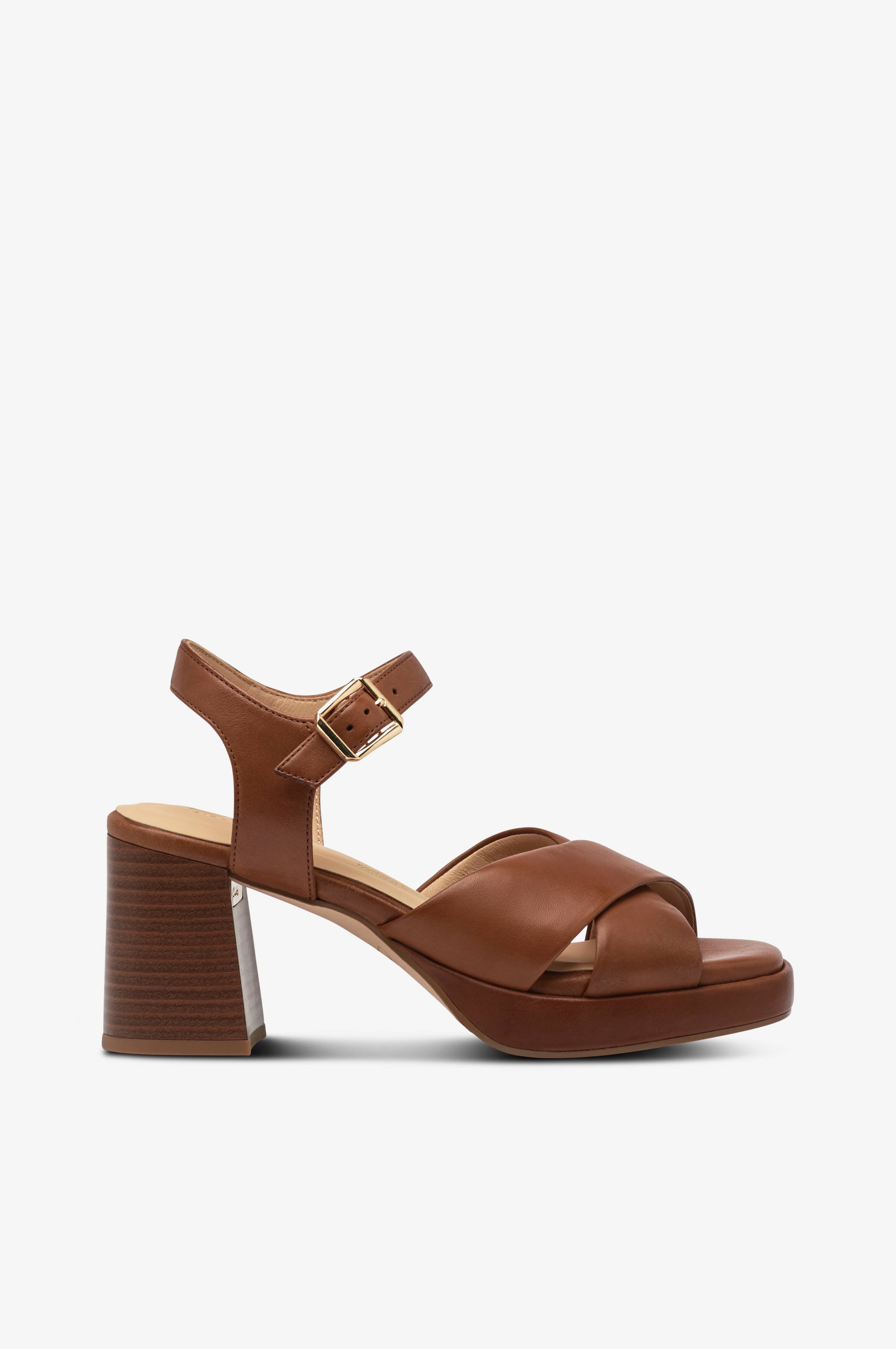 • Sandaler med hæl i læder• Krydsende remme• Justérbar rem ved anklen• Platformsål foran• Hælhøjde: 7 cm• Sålhøjde: 2 cm