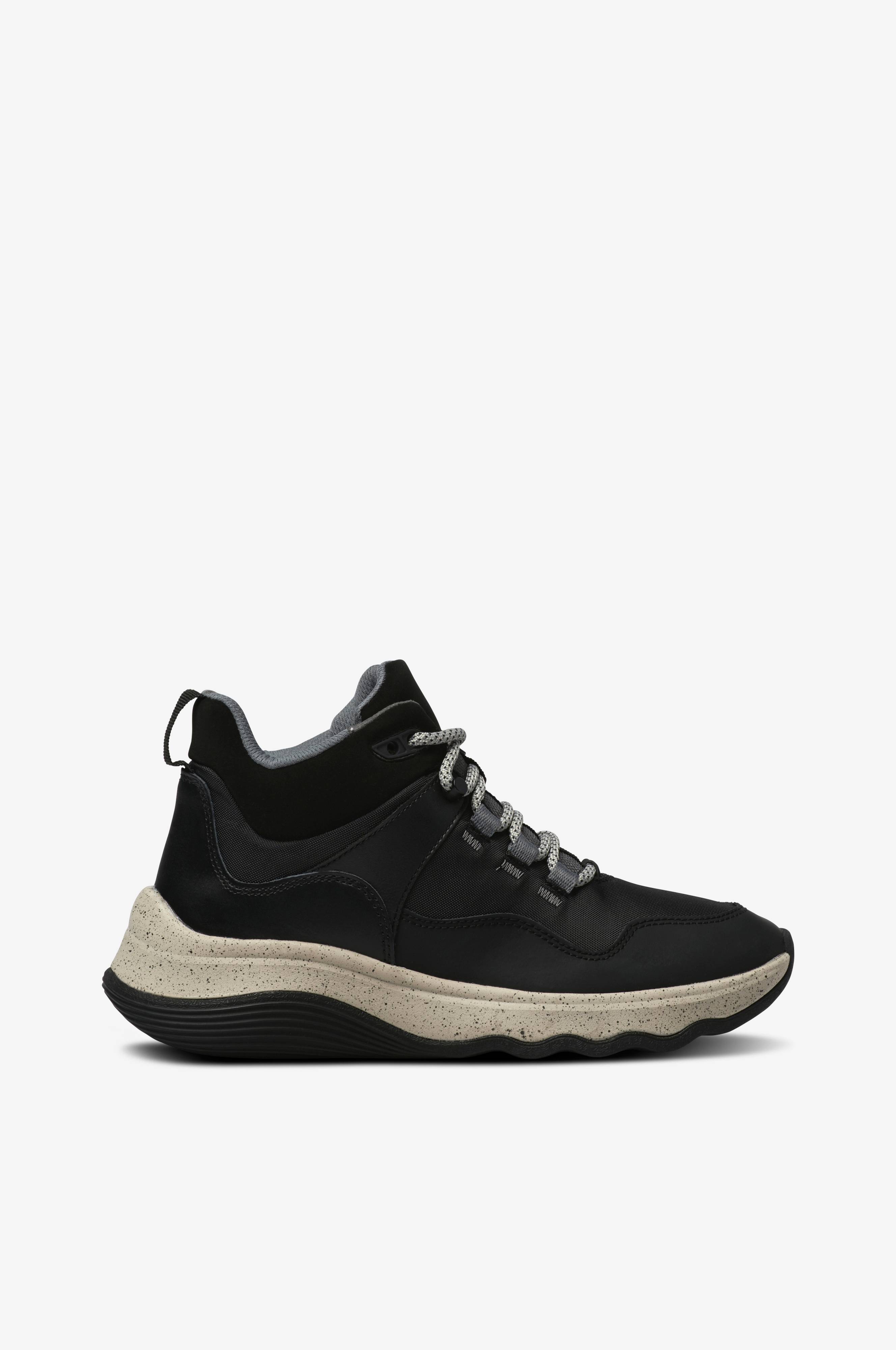 Sporty, ankelhøje sneakers med overdel i læder og slidstærk tekstil. Vatteret åbning og pløs for bedste komfort. Let, smidig model med snøre. Udtagelig indersål.Skafthøjde ca. 9 cm i str. 37.