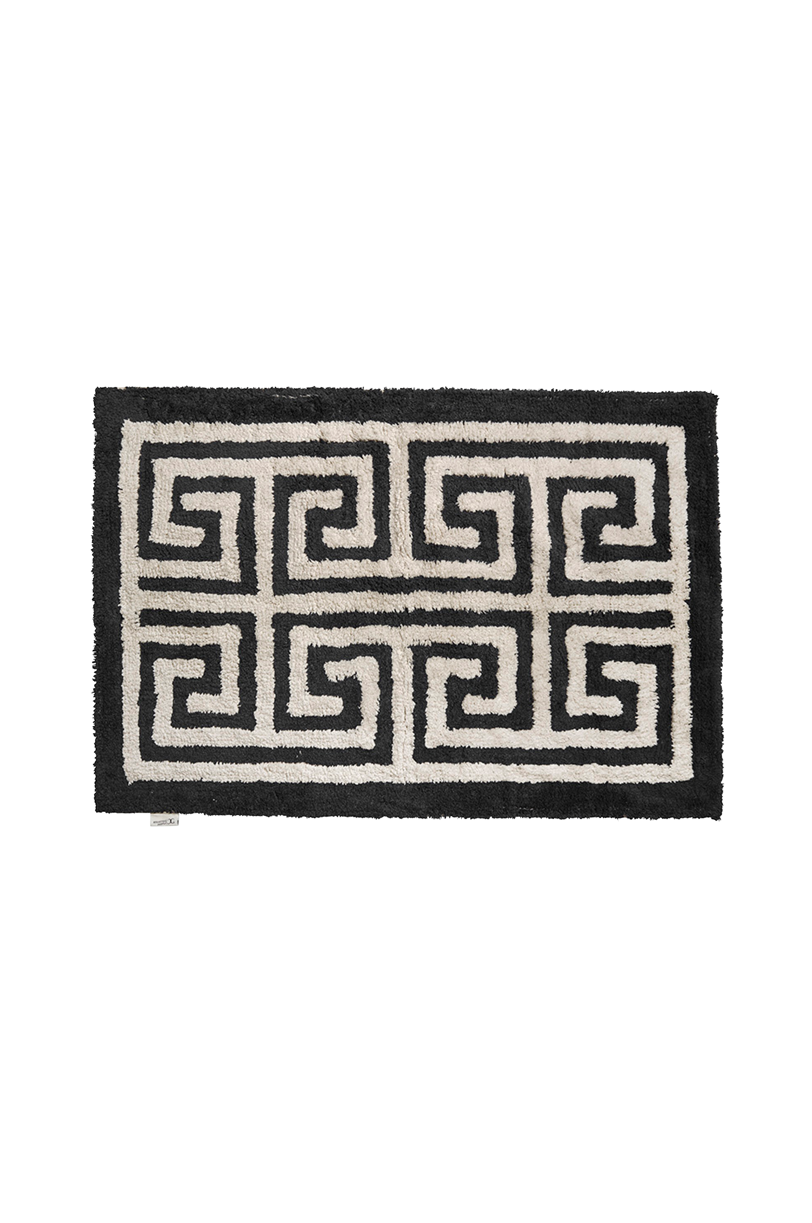 Badeværelsesmåtte Entrance i sort/hvid er lækkert blød at træde ud på efter bad. Måtten er i et flot mønster inspireret af antikkens græske mønstre. Måtten har en god størrelse.