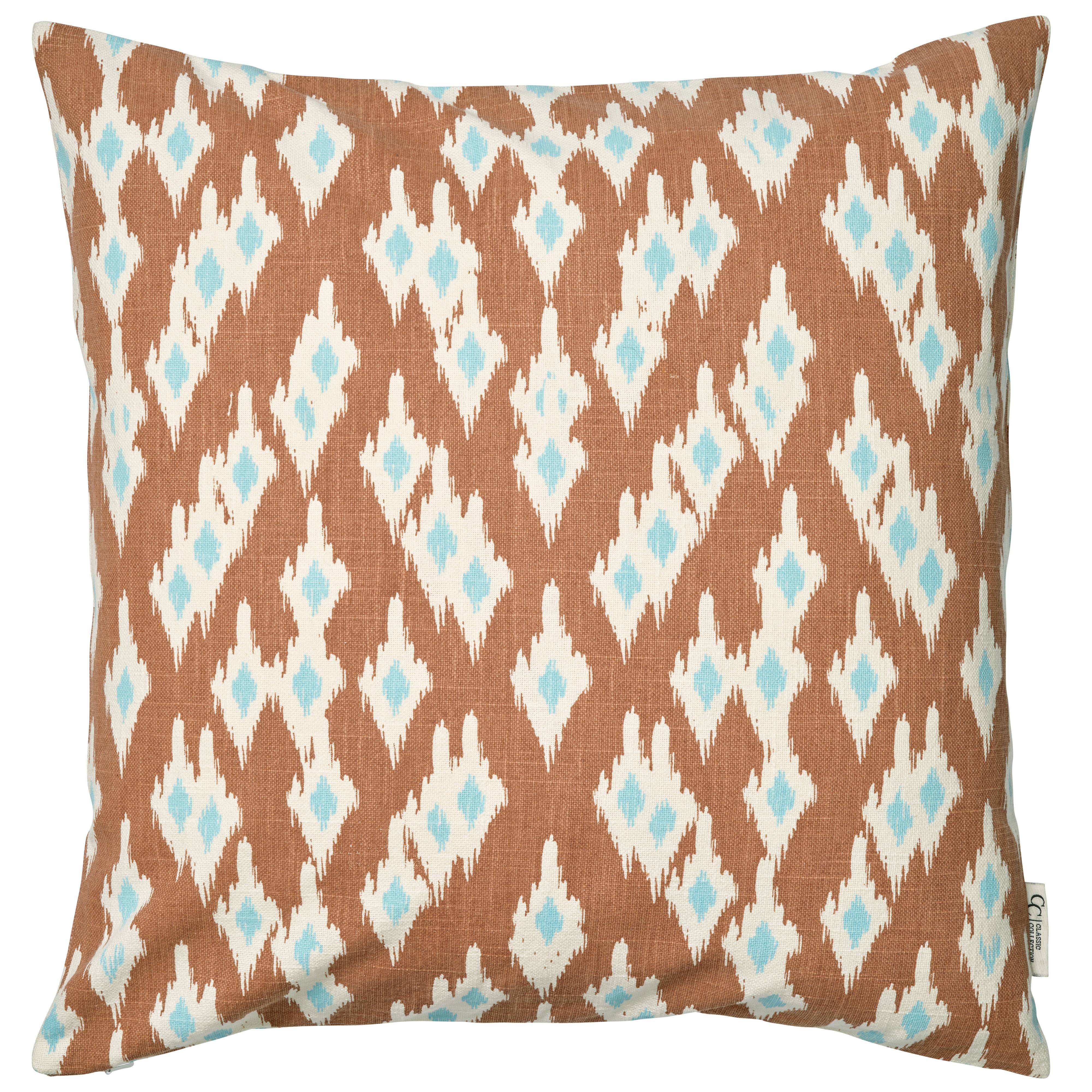 Ikat Diamond er et pudebetræk i 100 % bomuld med et stiliseret diamantmønster i ikat. Det tæt vævede, forvaskede stof har en blød, mat overflade og en behagelig fornemmelse. En skjult lynlås langs den nederste kant gør det nemt at tage betrækket af, samtidig med at sømmene forbliver diskrete. Bagsiden er lavet af samme stof og mønster som forsiden, hvilket sikrer et ensartet look fra alle vinkler. Indvendig pude medfølger ikke.