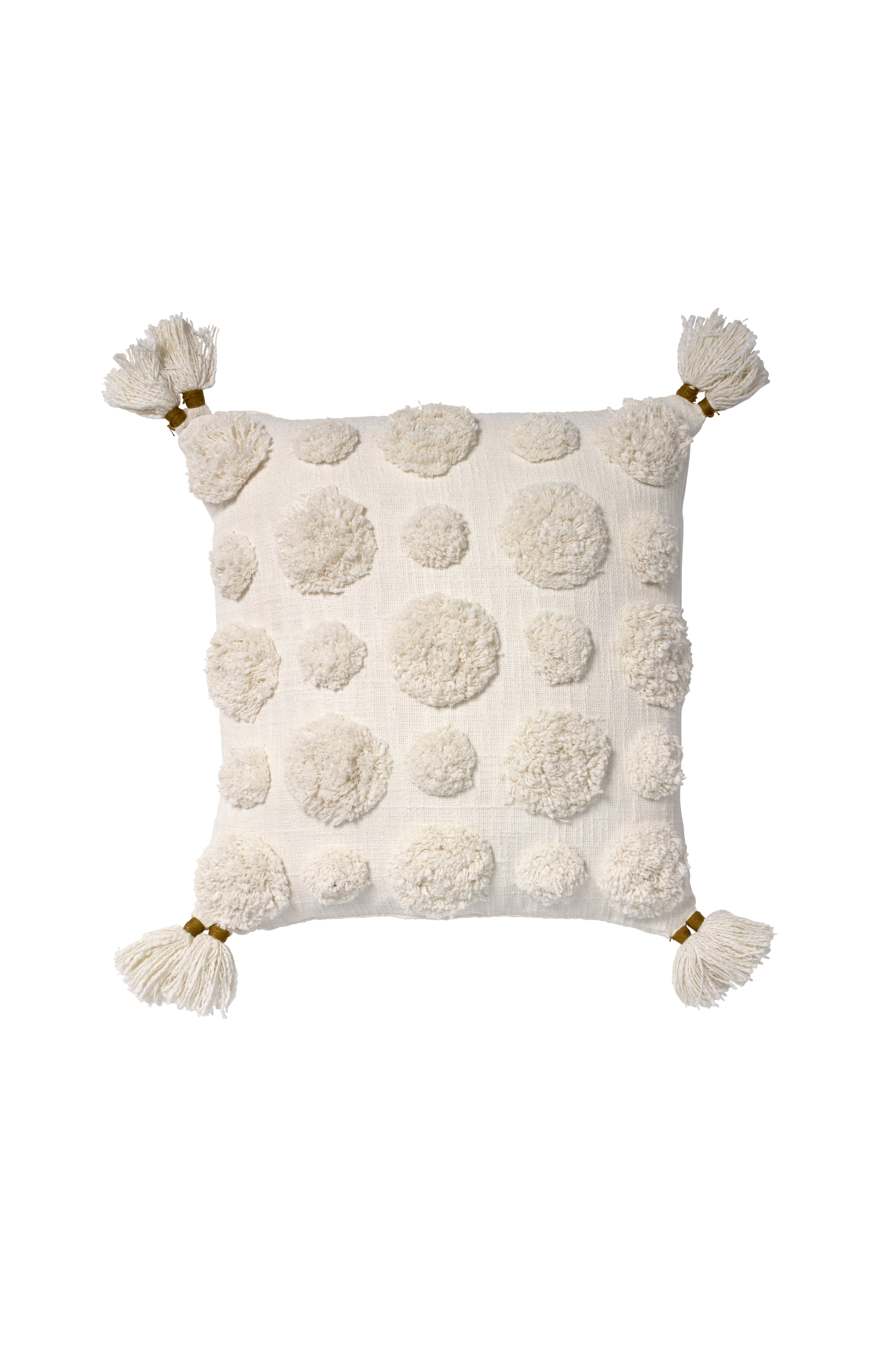 Pudebetræk Trysil er en skøn pude af bomuld med kugler og kvaste samt lynlås i bunden. Størrelse 50x50.