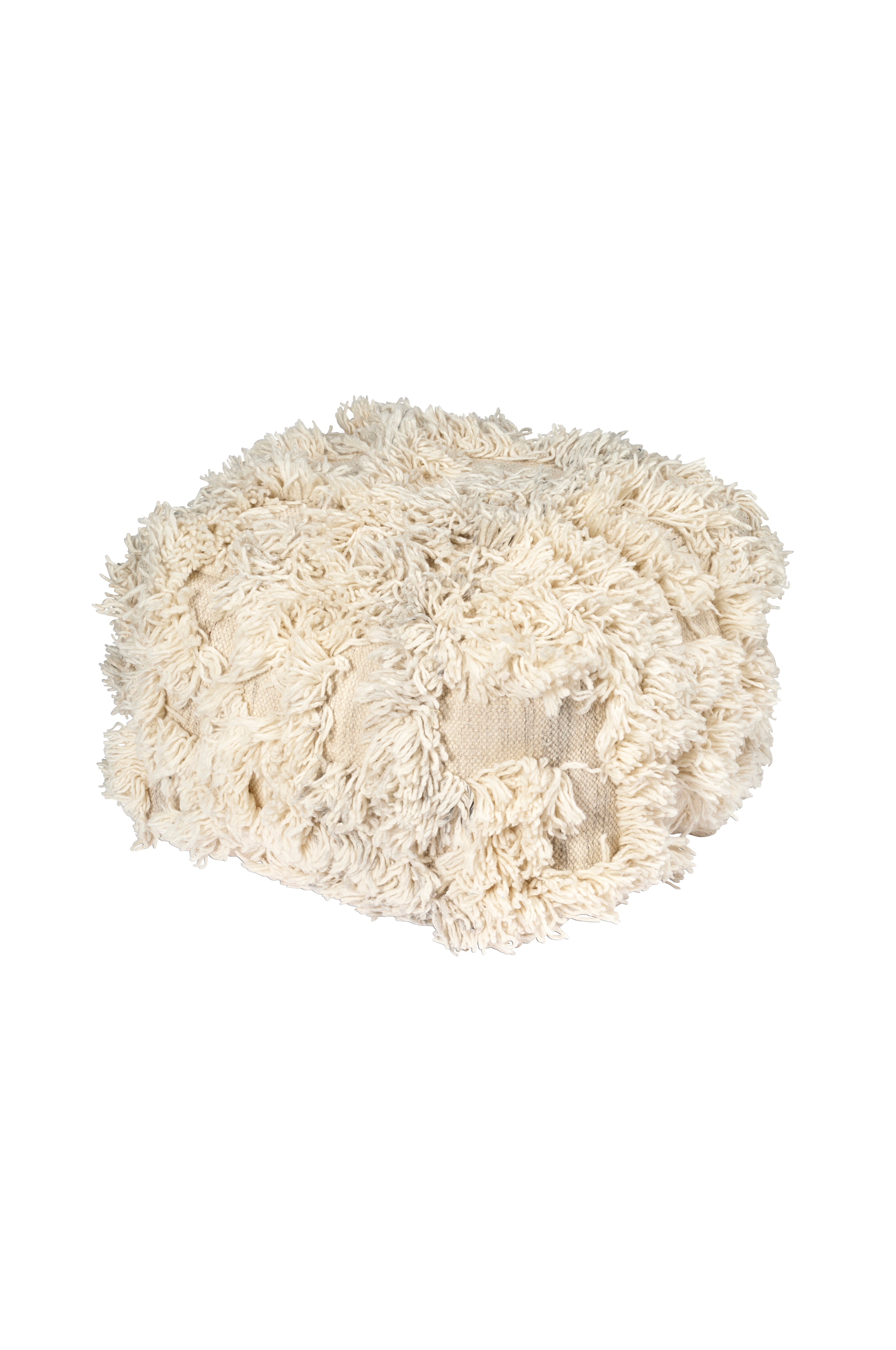 Puff Rio er lavet af et håndvævet uldtæppe. Det er fladvævet med et hævet mønster i luven, som gør indtrykket blødere. Puffen er en fin detalje, som passer lige så godt i stuen som i entreen.