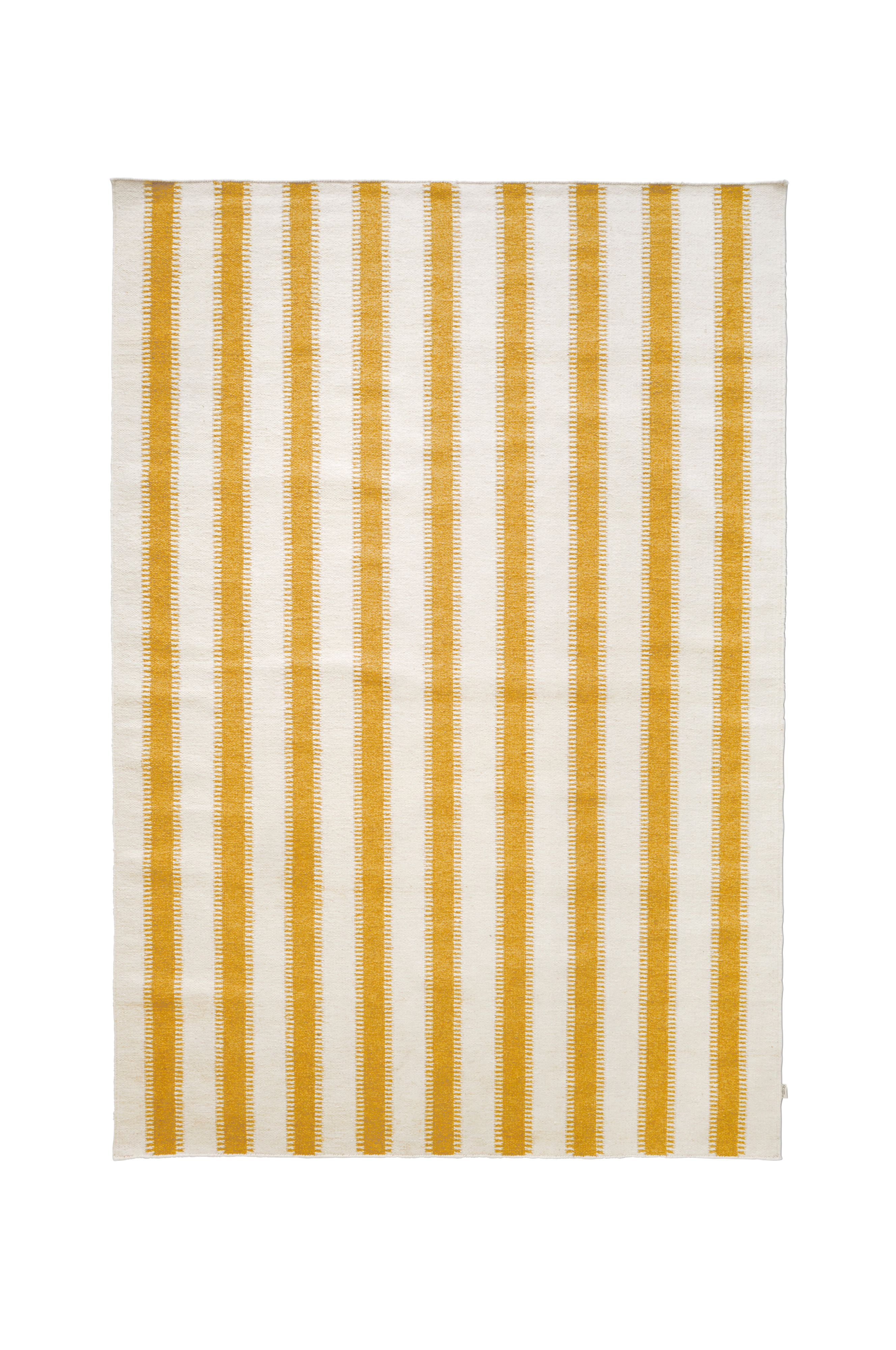 Stripes har et design med omfattende stripes, der smidigt griber ind i hinanden og skaber en smuk overgang mellem det hvide og det gule stripes. Farverne er tidløse og passer perfekt ind i mange forskellige indretningsstile. Størrelse: Tæpperne er håndlavede, og der kan forekomme en størrelsesvariation på +/- 5 %. Tykkelse: 0,7 cm Vendbart: Ja