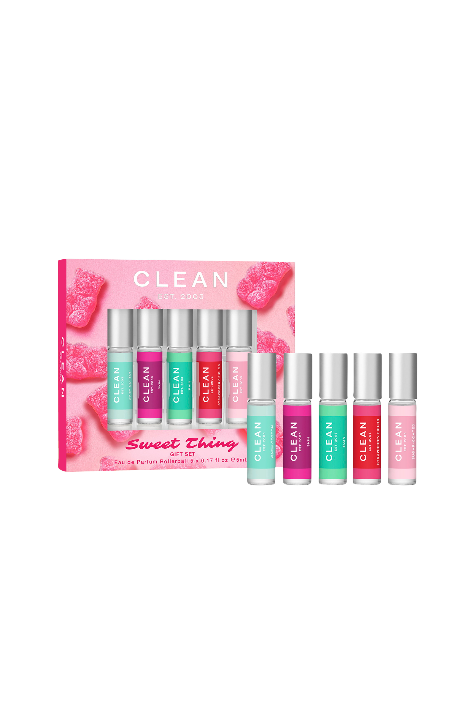Clean Sweet Thing Gift Set inviterer dig til legende lagdeling og duftopdagelse. Udforsk fem smukke dufte - alle i praktisk rollerball-format - for at blande, matche og skabe en signatur, der er helt din egen. Afslut din duftkombination med et sprøjt Sugar-Coated for at få et glimt af sødme, der bliver hængende. Sweet Thing Gift Set er den perfekte gift - eller en godbid kun til dig. Din signaturduft, gjort enkel.