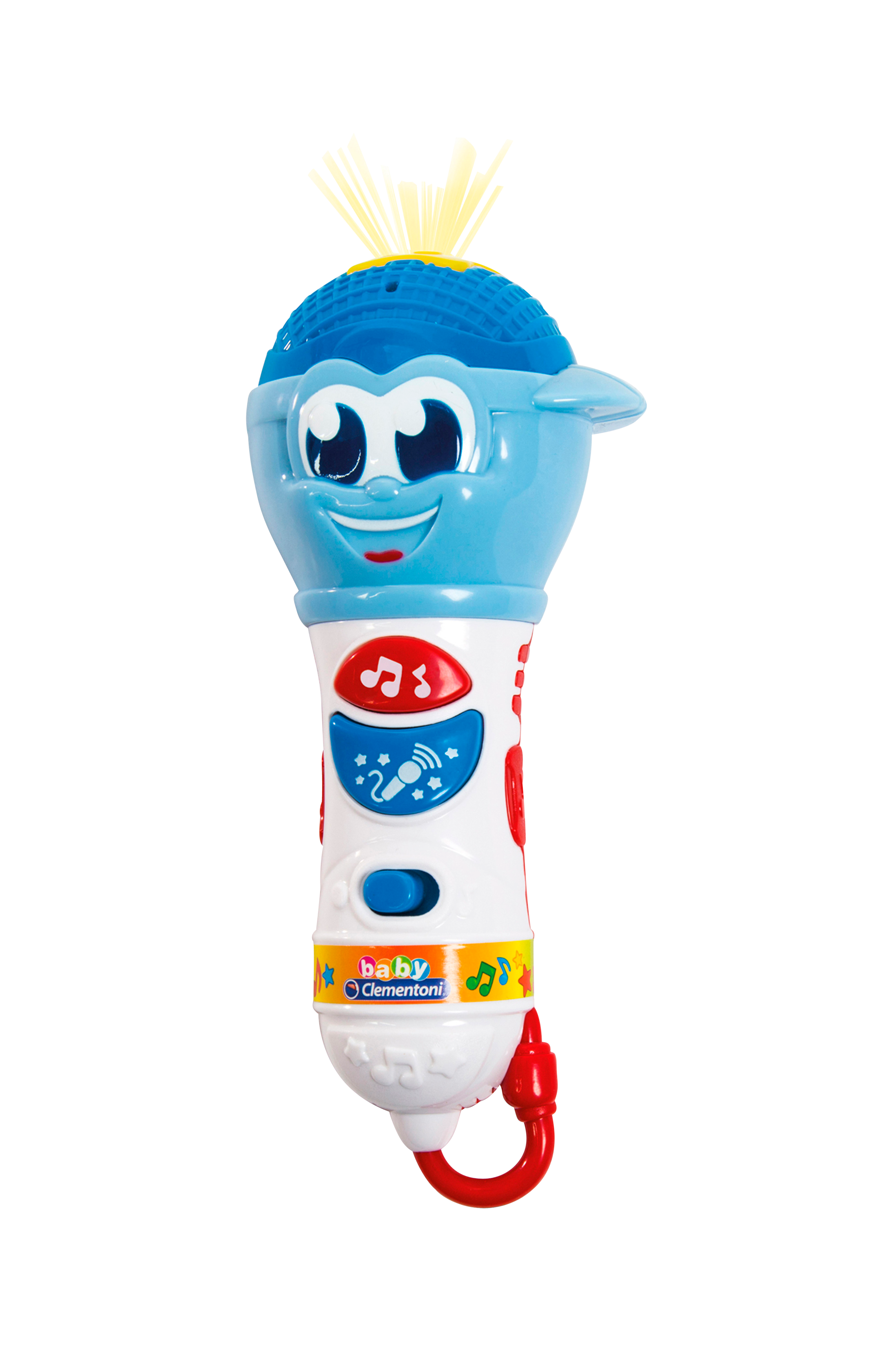 Legetøjsmikrofon med lyd og lys til de mindste. Med melodier og sjove lydeffekter. Tryk på knappen og syng i mikrofonen, så bliver stemmen forstærket. Let at gribe om for små hænder.