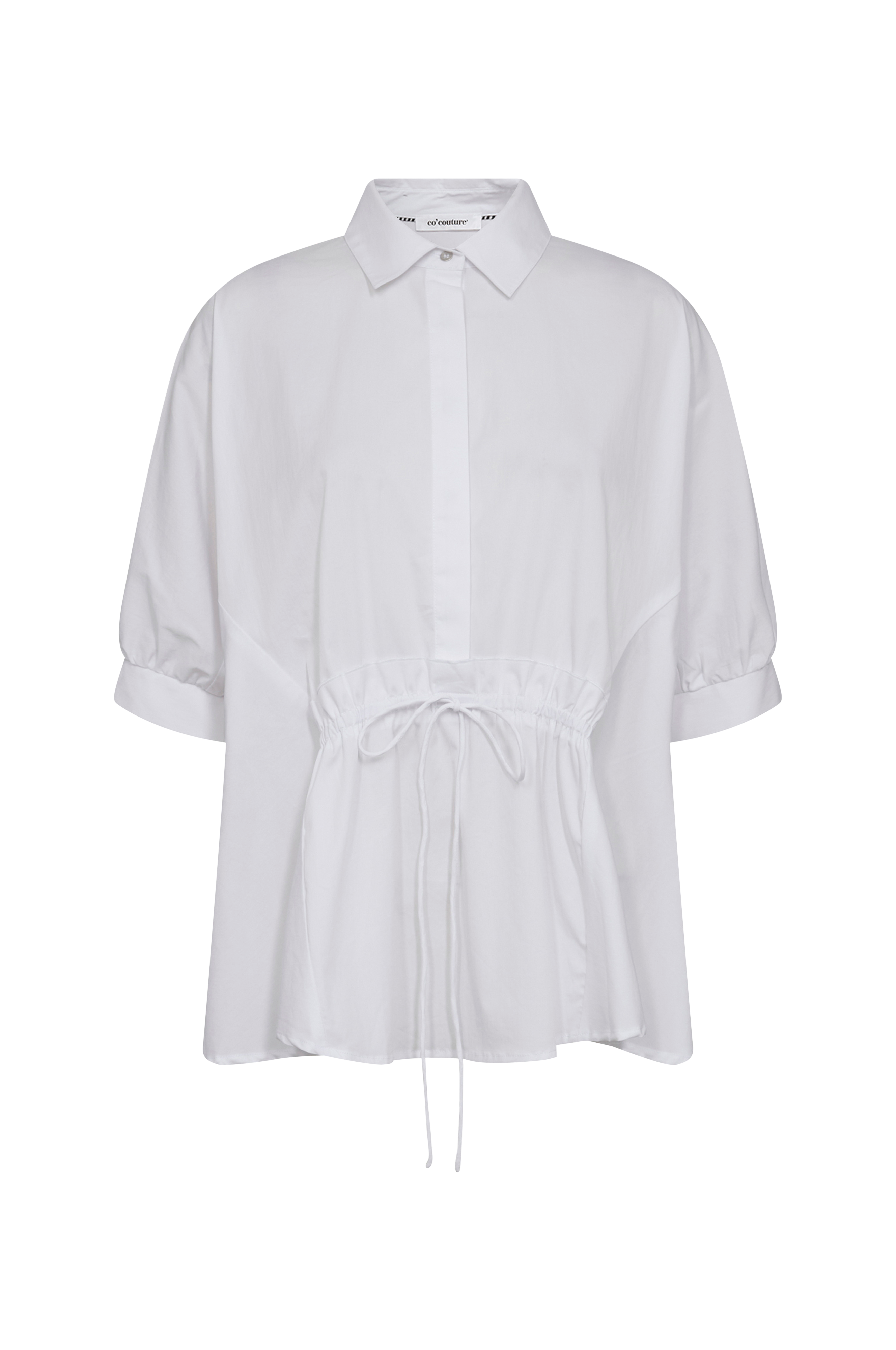 • Bred model med svaj• Træksnørre foran på taljen• Skjulte knapper oppe foran• Korte ærmer