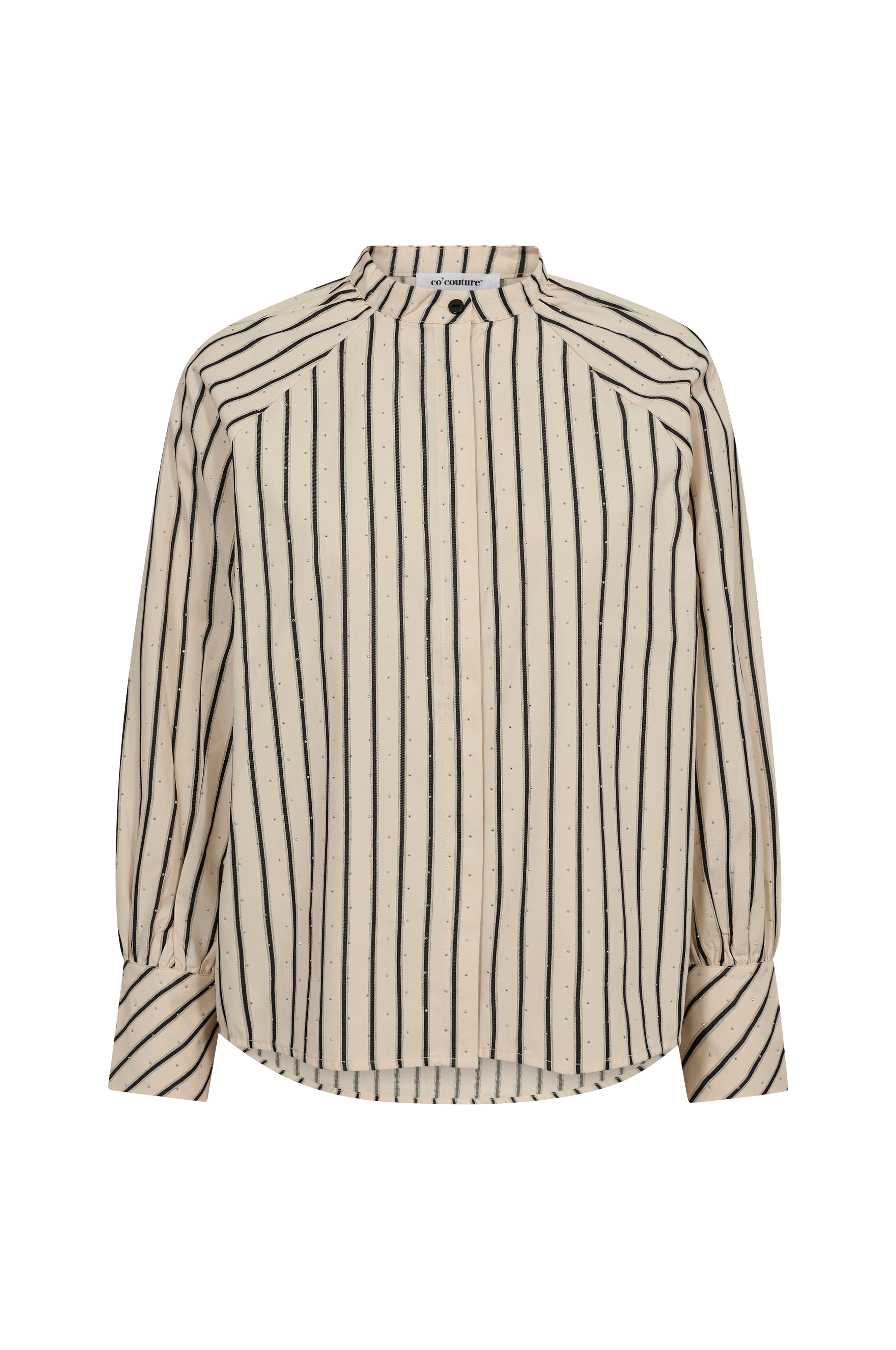 • Stribet bluse i bomuldsmiks med små, glitrende rhinstene hele vejen rundt