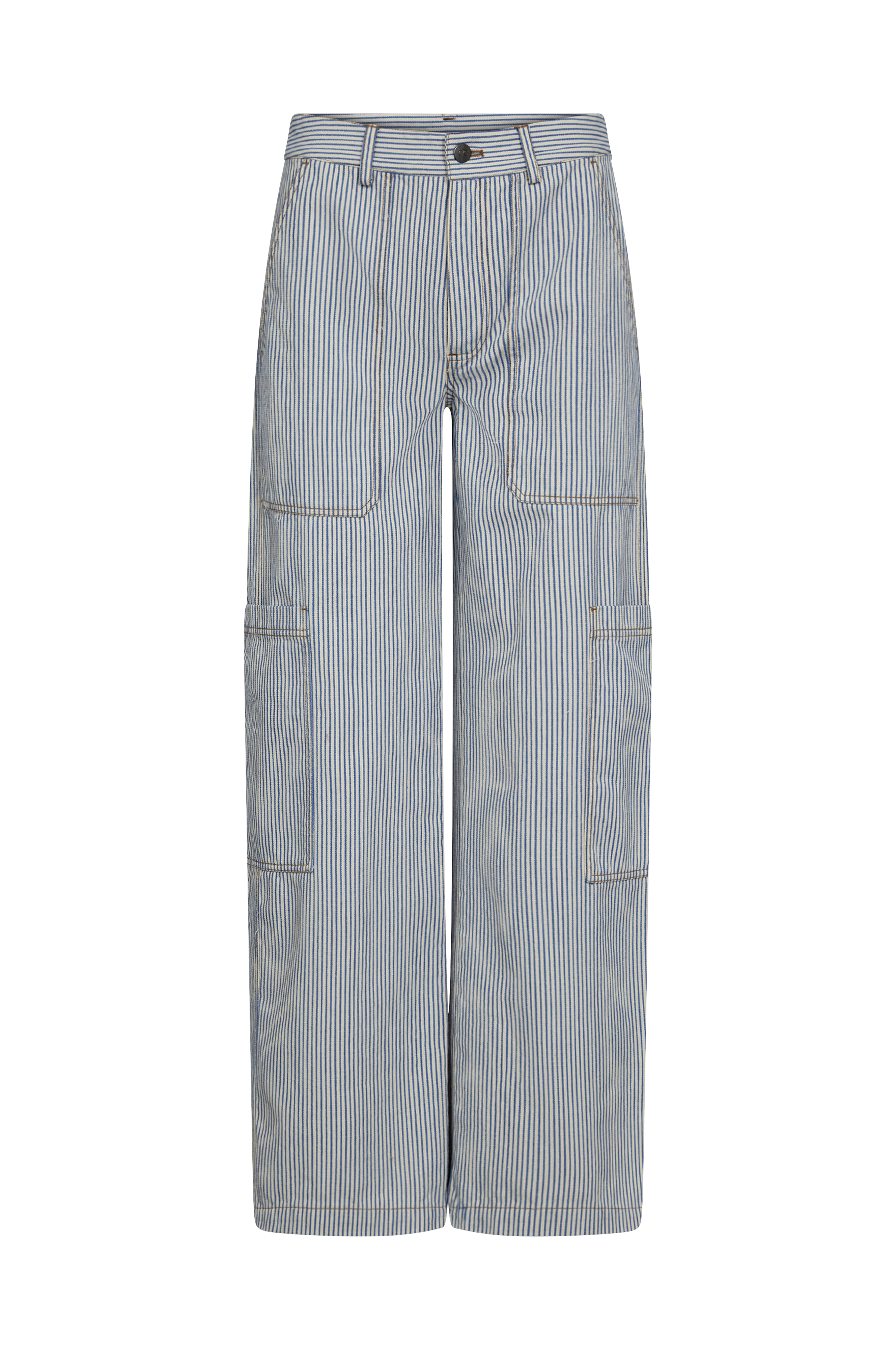 • Model med brede, lige ben• Linning med stropper• Skrå lommer foran• Store benlommer• Snydelommer bagpå• Indre benlængde: 79 cm i størrelse S