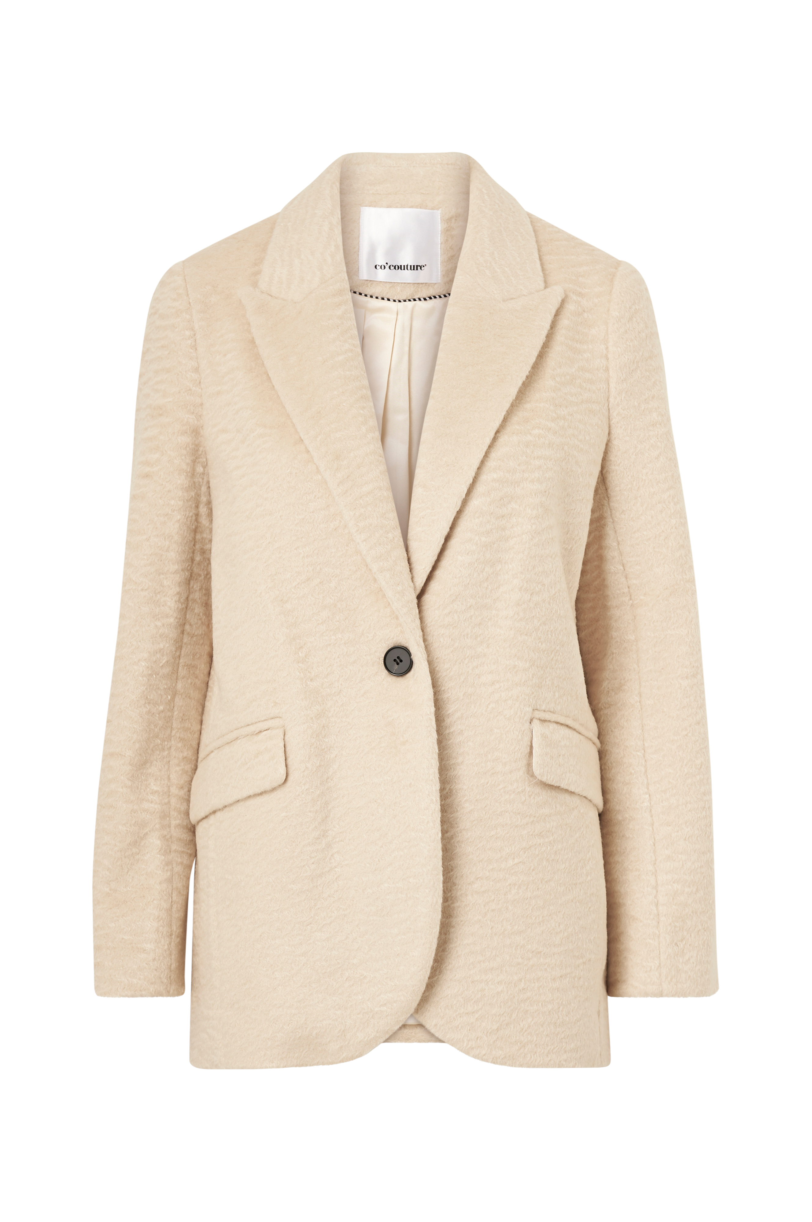 • Oversize model• Knap foran• To lommer• Vævet for