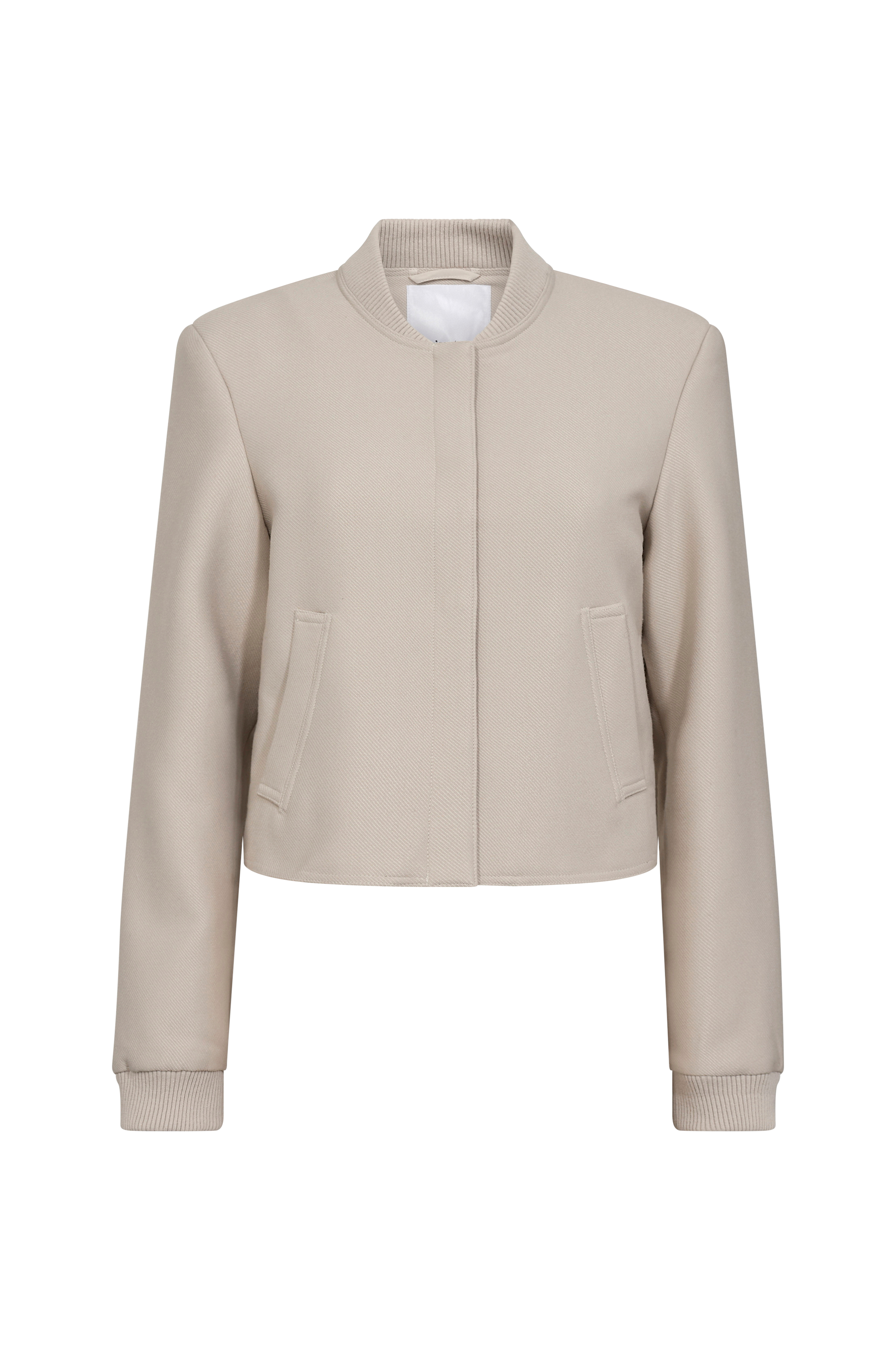 • Kort jakke i viskoseblanding• Ribbet krave• Skjulte trykknapper• Sidelomme• Ribmanchetter ved manchetterne• Vævet, glat for• Længde: 48 cm i størrelse S