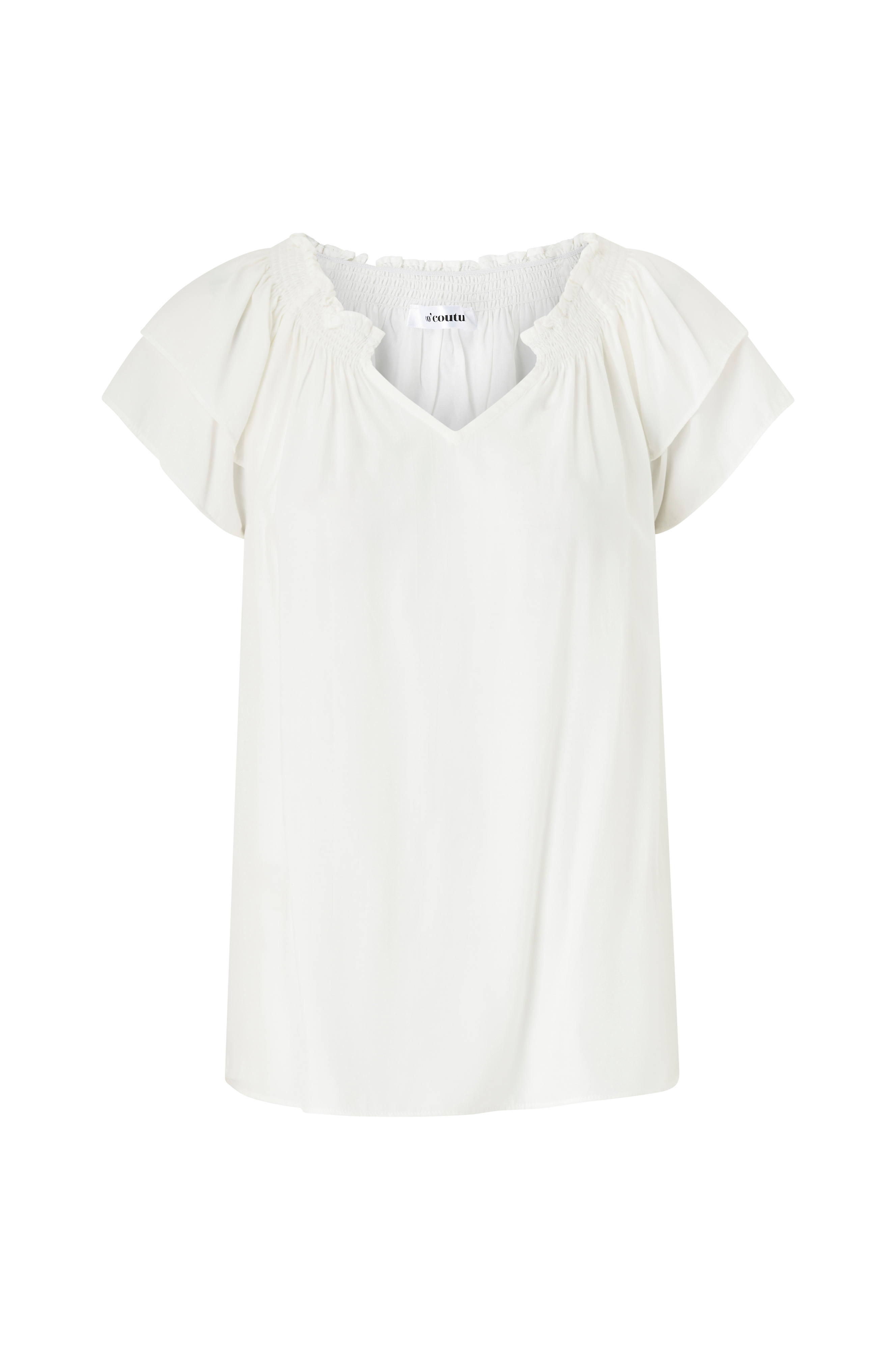 • Top med løs pasform• Smocket halsudskæring med lille v-udskæring ved fronten• Flagrende ærmer