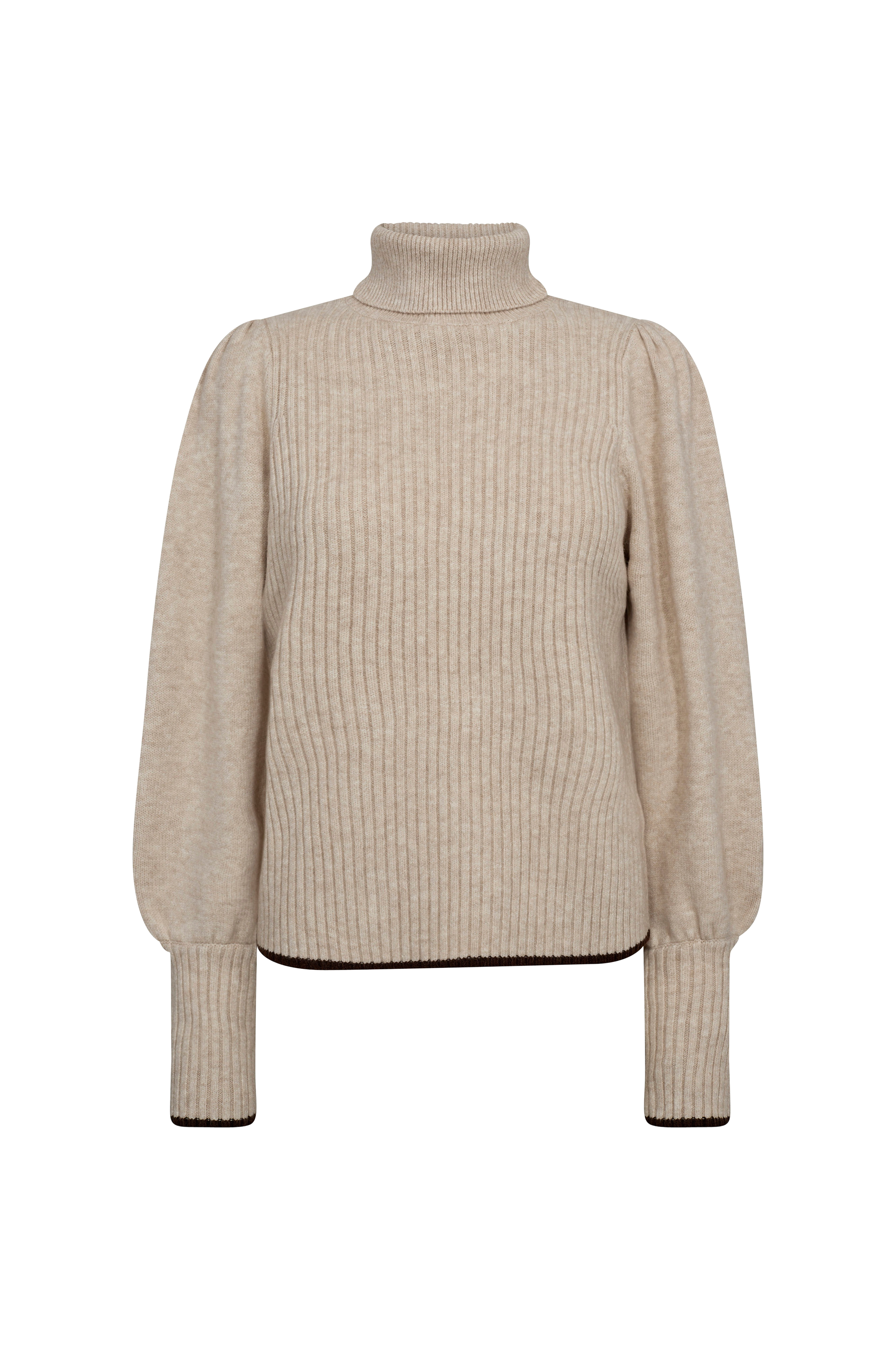 • Blød, fintstrikket trøje• Rullekrave• Lange ballonærmer• Ribmanchetter• Afslappet pasform