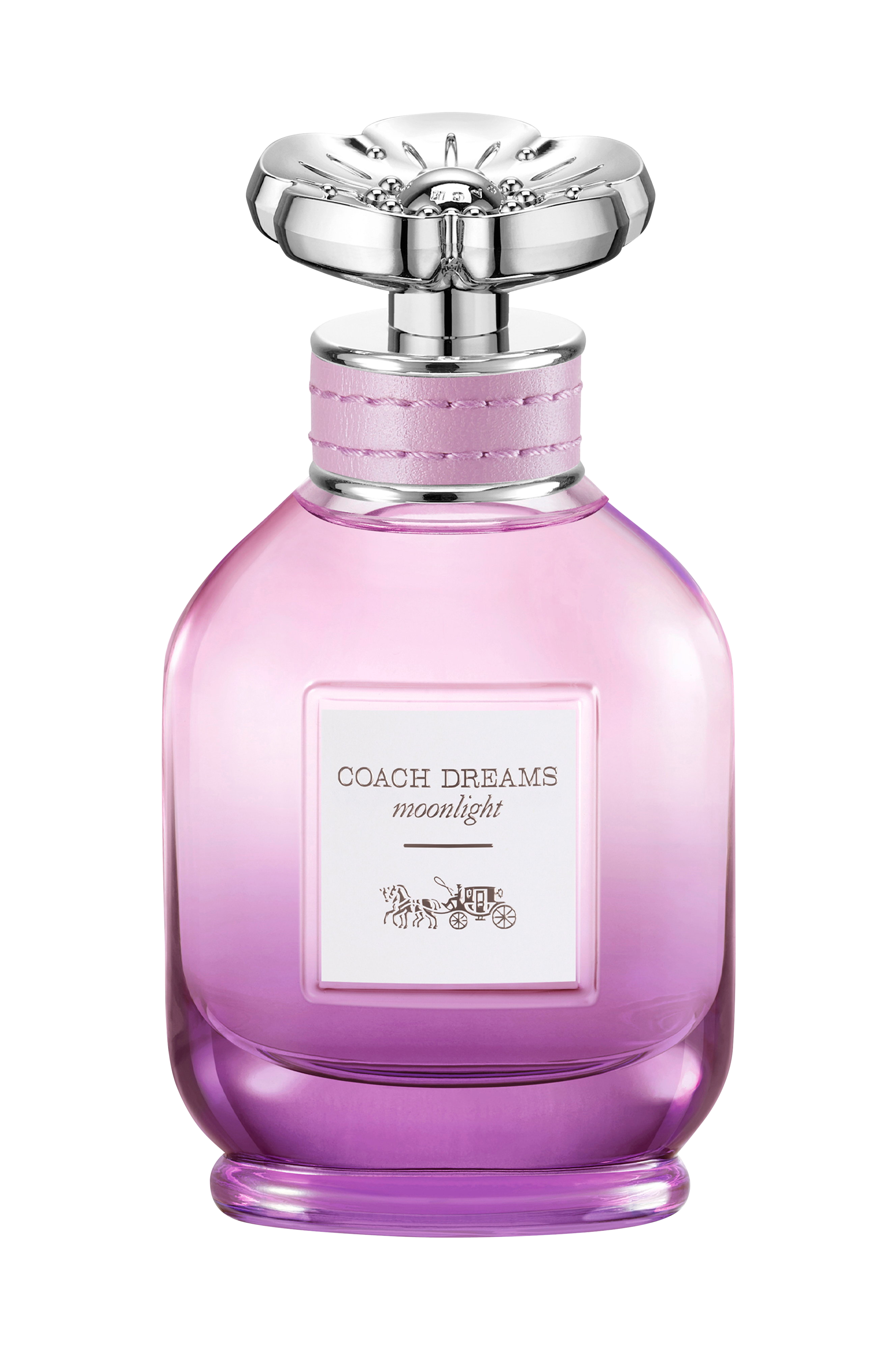 Glasflasken, der minder om vintage-apoteksflasker, har en ombre-lilla gradientlakering, der fremkalder magien i dreams, og er afsluttet med en sølvsprayhætte formet som Tea Rose, en varig huskode. En raffineret læderring i bunden af hætten nikker til Coachs rige historie inden for læderhåndværk.