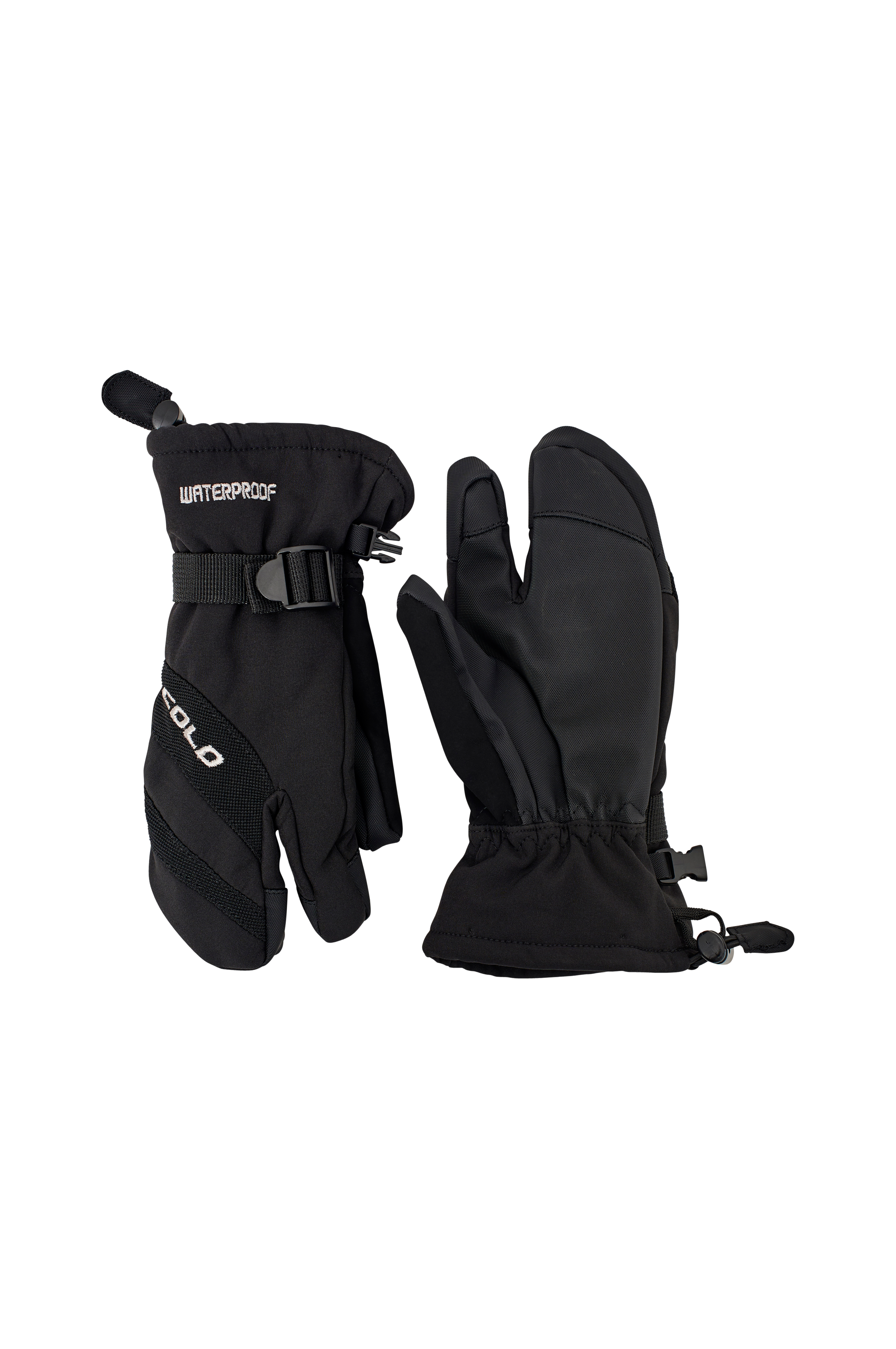 Skihandsker 3-Finger Ski Gloves Junior fra Cold er vandtætte med varmende isolering og for i blød fleece. Model som er en blanding mellem fingervanter og luffer med forstærket greb på indersiden. Justerbart spænde ved håndleddet og løbegang langs åbningen.