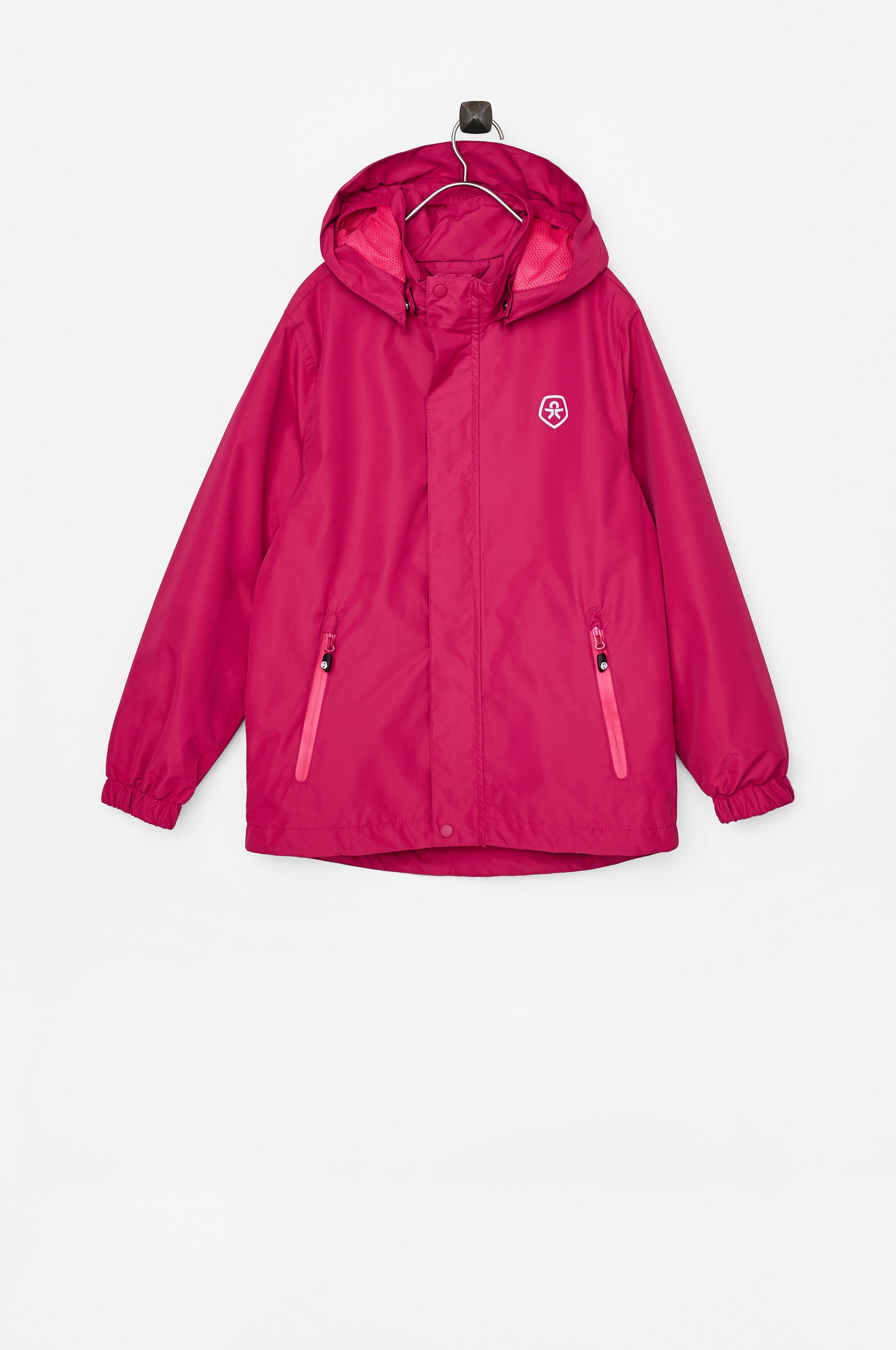 Regnjakke Niffer Rain Jacket AWG fra Color Kids med vind- og vandtæt yderstof som er smudsafvisende. 10.000 mm vandsøjletryk og åndbarhed op til 5000 g/m2/24h. Alle sømme er tapede og vandtætte. Aftagelig, meshforet hætte med indsat elastik i forkanten. Jakken lukkes med lynlås som har hagebeskytter og beskyttende overfald med trykknapper. To lommer med lynlås. Indsat elastik i ærmekant. Løbegang med stop i kanten forneden. Jakken er meshforet med glat, vævet for i ærmerne.