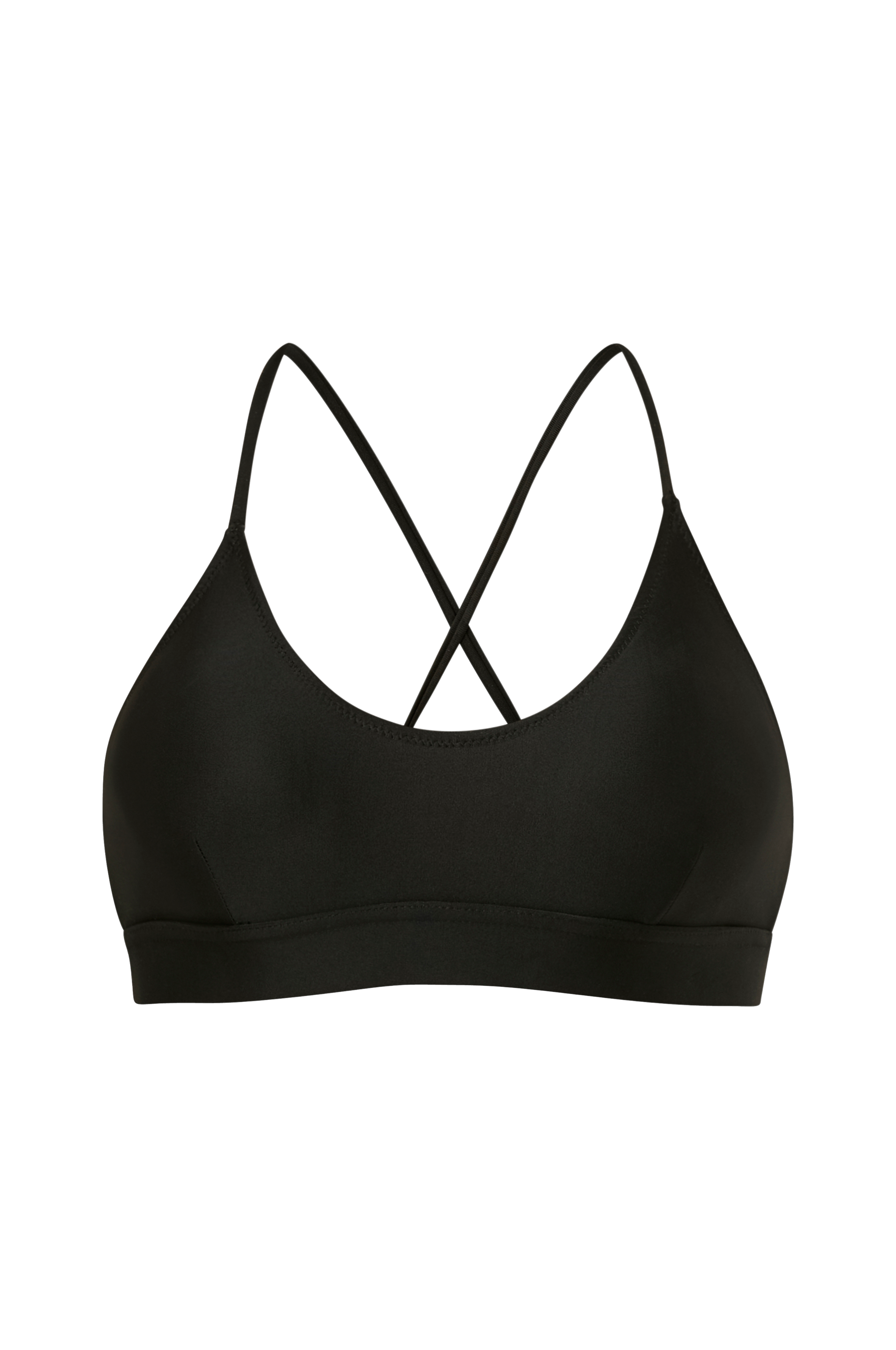 • Aftagelig polstring• Bred elastik nederst• Tynde skulderstropper• Snøring i ryggen