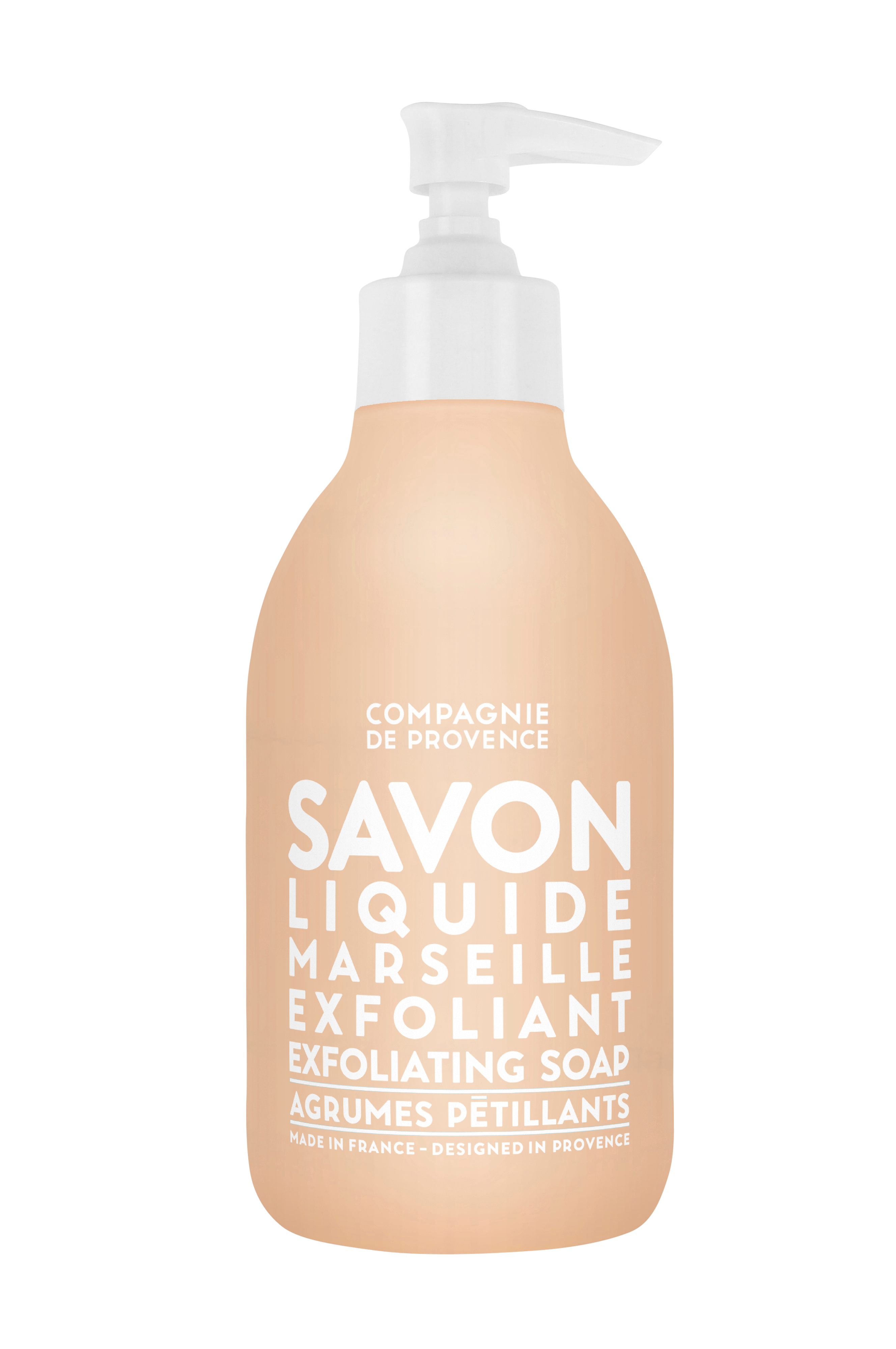 Exfolierende flydende Marseille-sæbe designet til at rense og exfoliere krop og hænder i et enkelt trin. Takket være olivenkerner fra oliven, der høstes omkring Middelhavet sammen med vegetabilske olier, bliver huden skånsomt exfolieret og får en frisk duft af citrus. Dermatologisk testet. Påfør en lille mængde produkt i dine hænder, og arbejd det ind, skyl derefter med lunken vand.