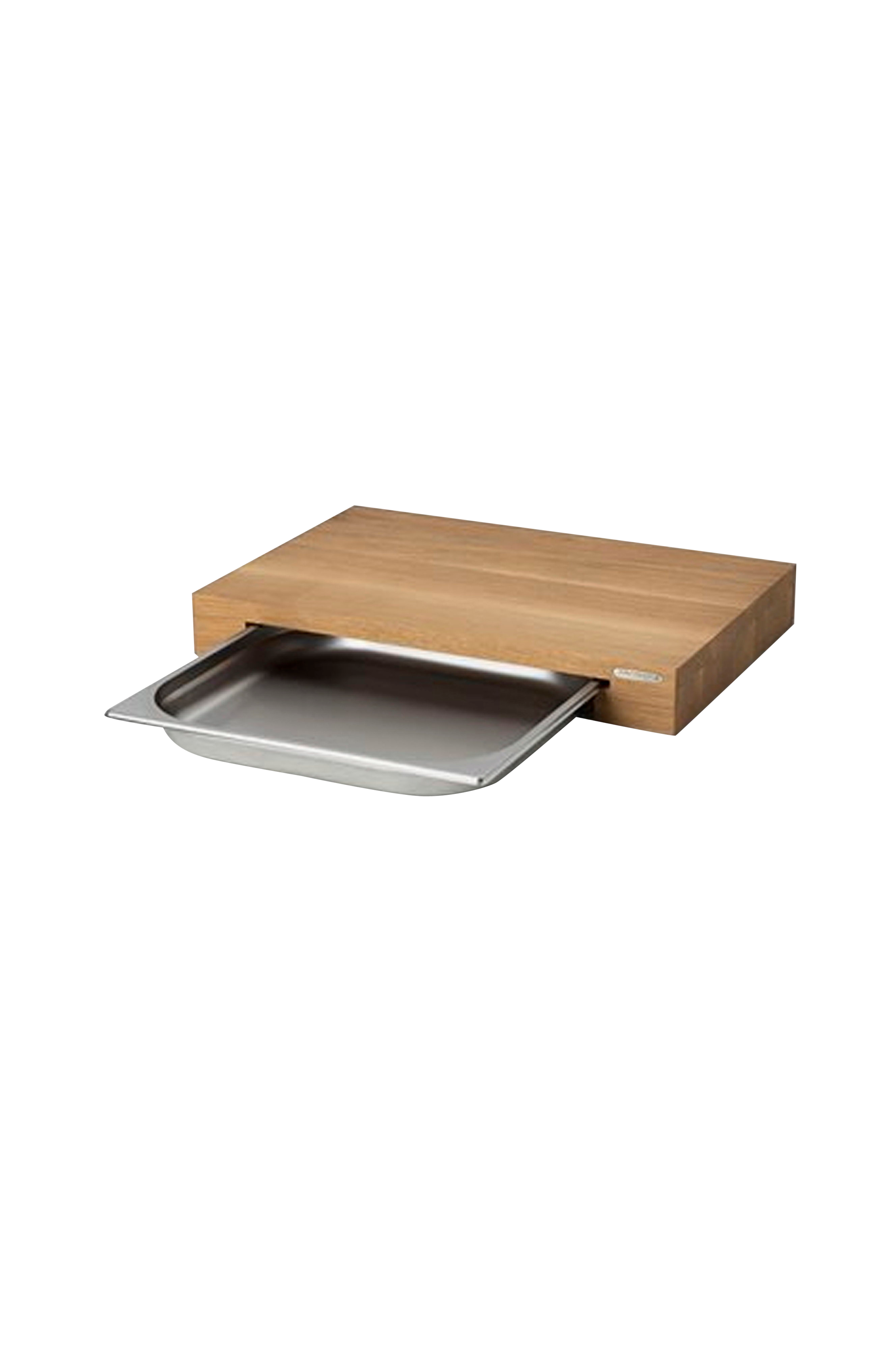 Et stærkt og stabilt skærebræt fra continenta med en opsamlingsboks i rustfrit stål. Da skærebrætterne er lavet af 100 % naturligt træ (eg), er den bedste måde at vedligeholde dem på at rengøre dem med en fugtig klud og indimellem smøre dem med madolie (olivenolie, solsikkeolie eller lignende). Træ reagerer på fugt og temperaturændringer. Begge dele bør undgås, og det samme gælder rengøring i opvaskemaskinen. Med opsamlingsboks eg længde: 48 cm bredde: 32 cm højde: 6 cm