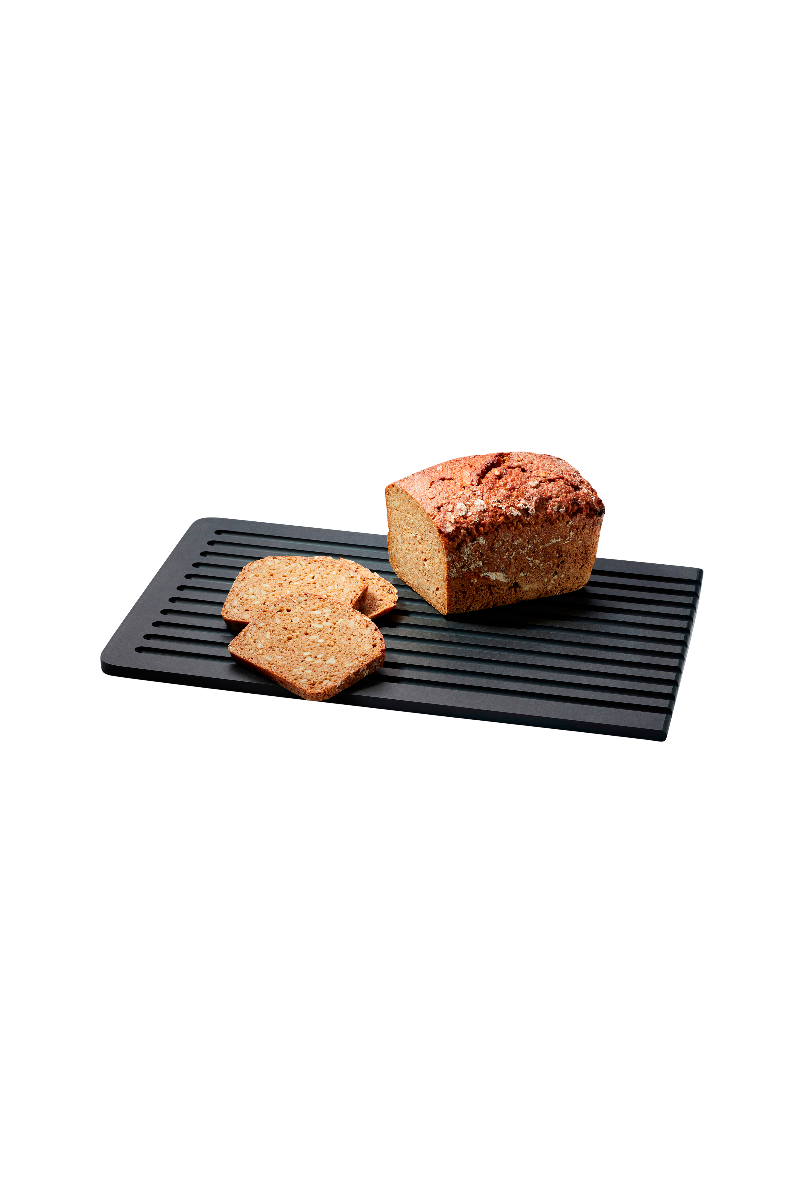 Det perfekte skærebræt til brød, udstyret med praktiske riller, der opsamler krummer og holder arbejdsfladen ren og pæn. Kombinerer funktionalitet og stil for en behagelig og hygiejnisk skæreoplevelse.