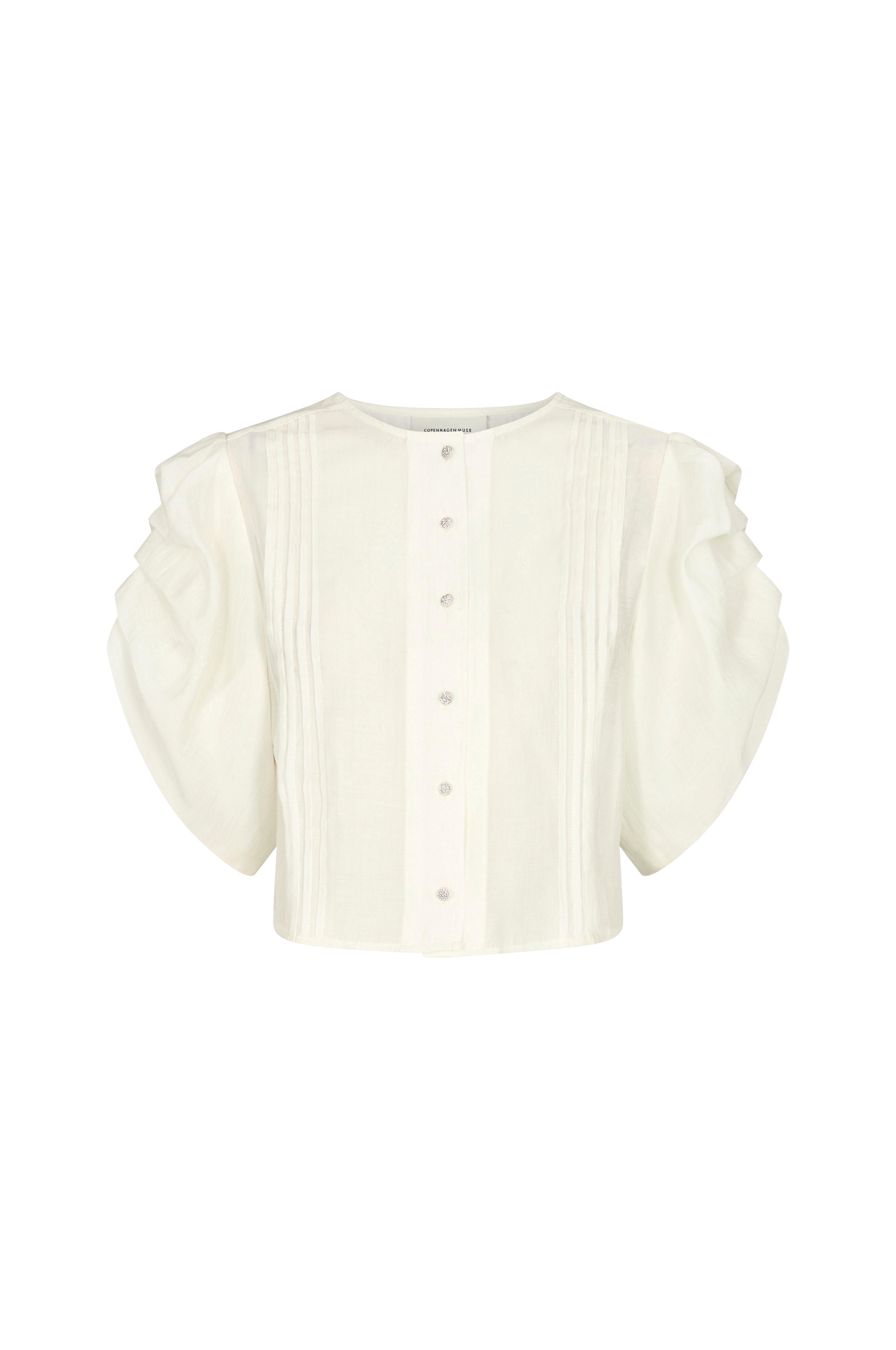 • Lige model• Biselæg foran• Knapper med rhinsten• Kort, bredt ærme med syede bokslæg