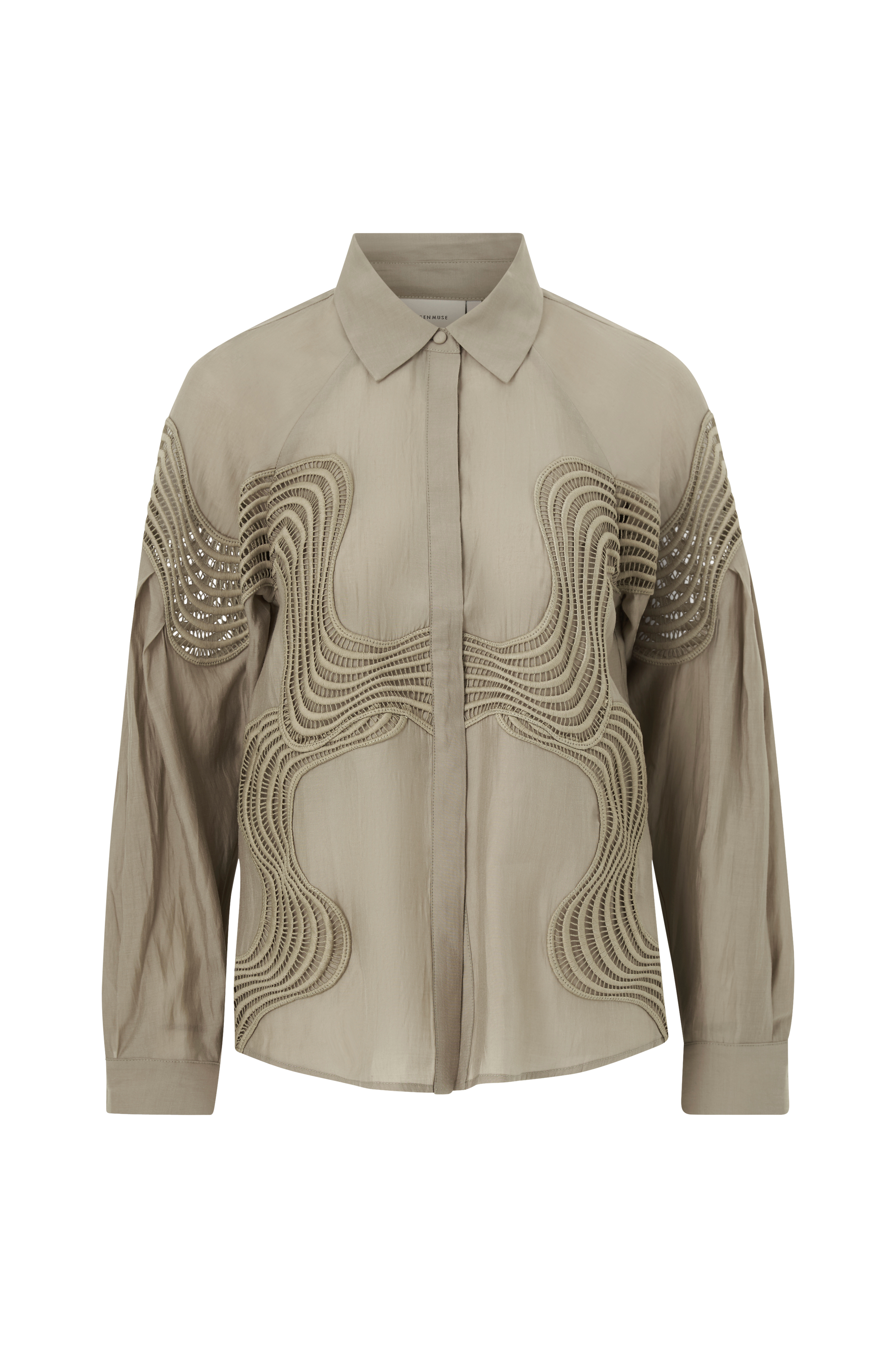 • Model med blonde foran og på ærmerne• Skjulte knapper hele vejen frem• Langt raglanærme med manchet