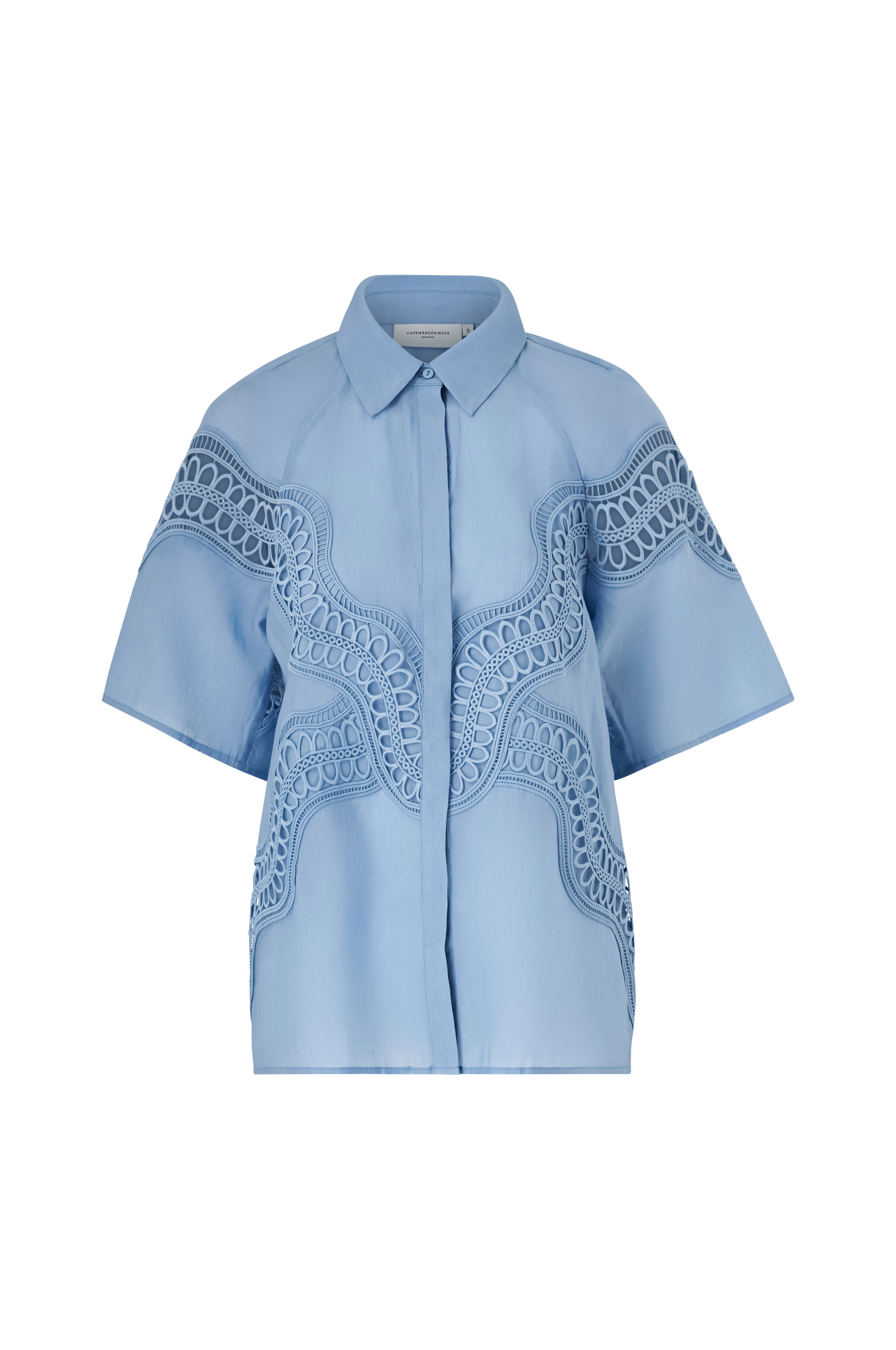 • Model med blonde foran og på ærmerne• Skjulte knapper hele vejen frem• Korte raglanærmer• Semitransparent stof