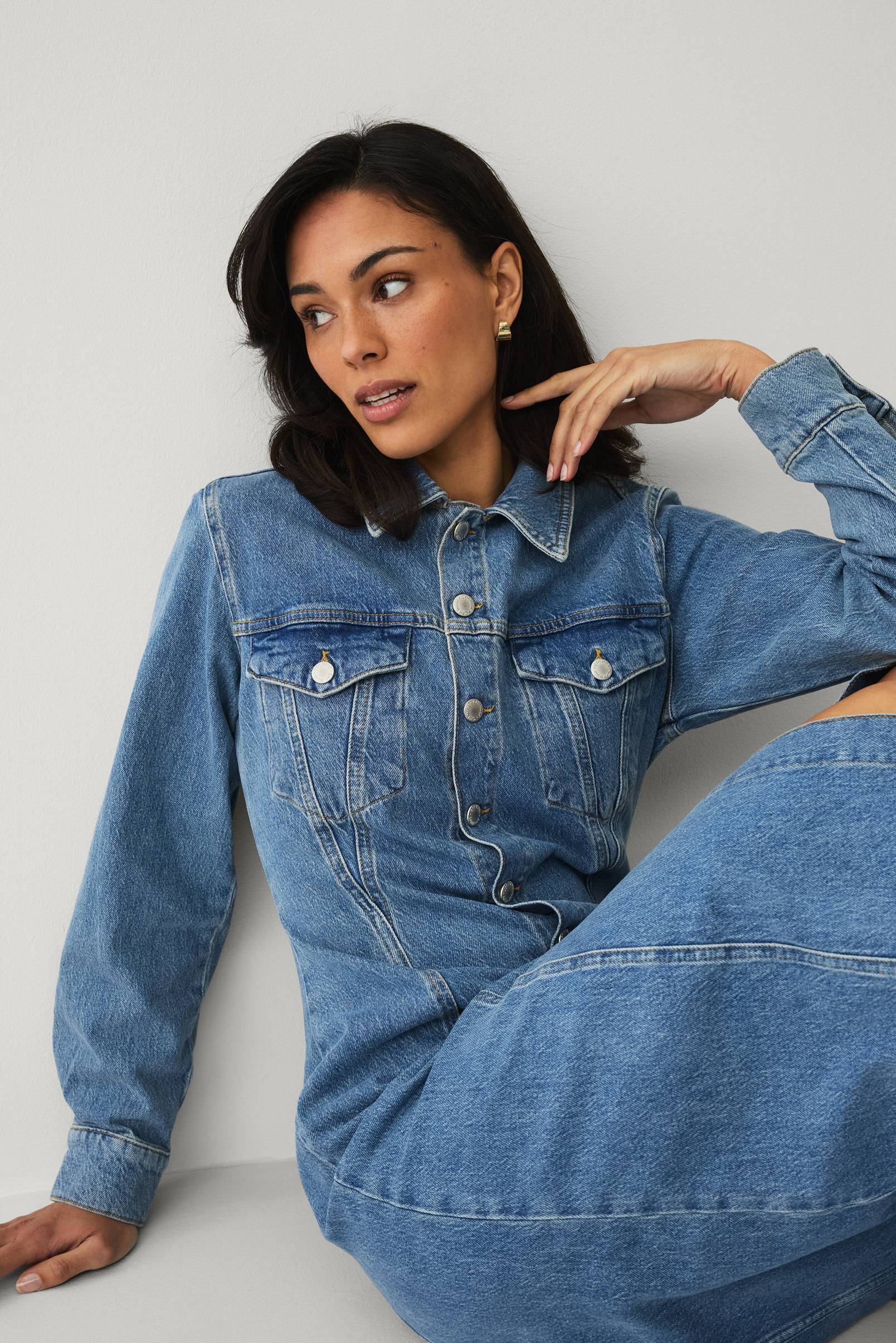 • Maxi kjole i denim med krave• Knaplukning• Slids med knap ved manchetterne• To brystlommer• Længde: 132 cm i størrelse S