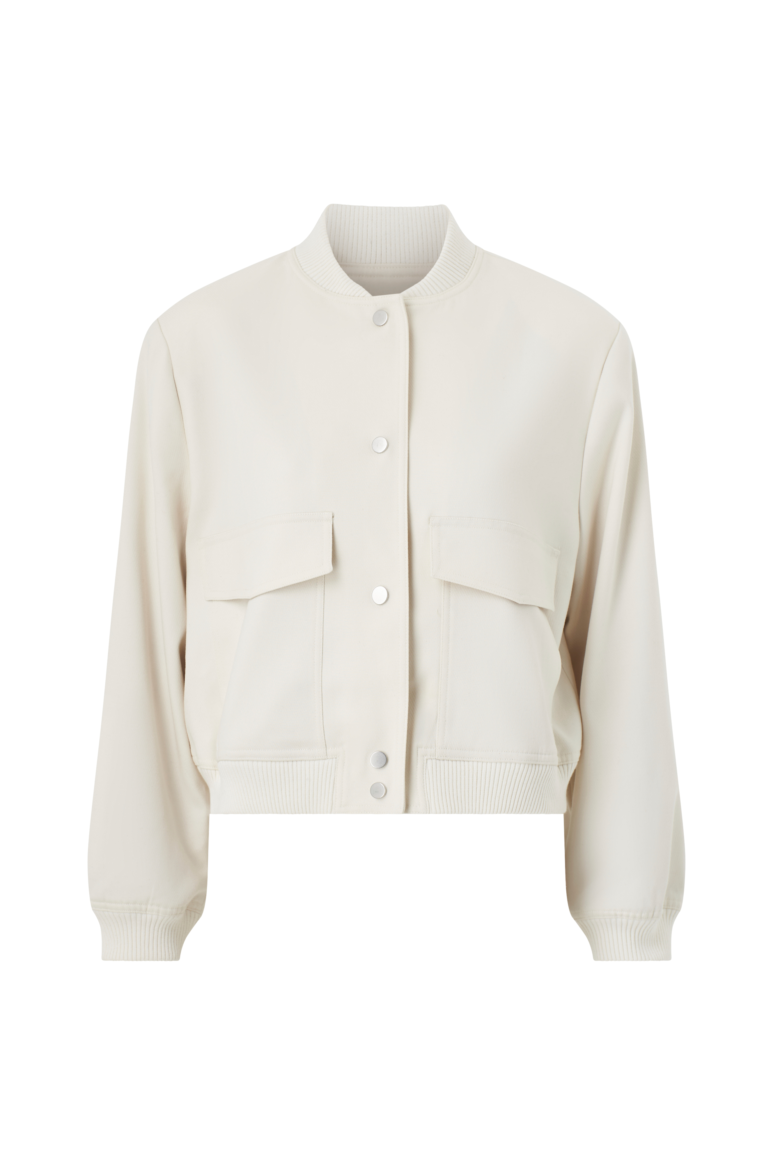 • Kort, bred model• Ribstrikket krave• Trykknapper foran• Lommer• Ribmanchet ved nederste kant og ved manchetterne• Tynde skulderpuder• Foret• Længde: 52 cm i størrelse S