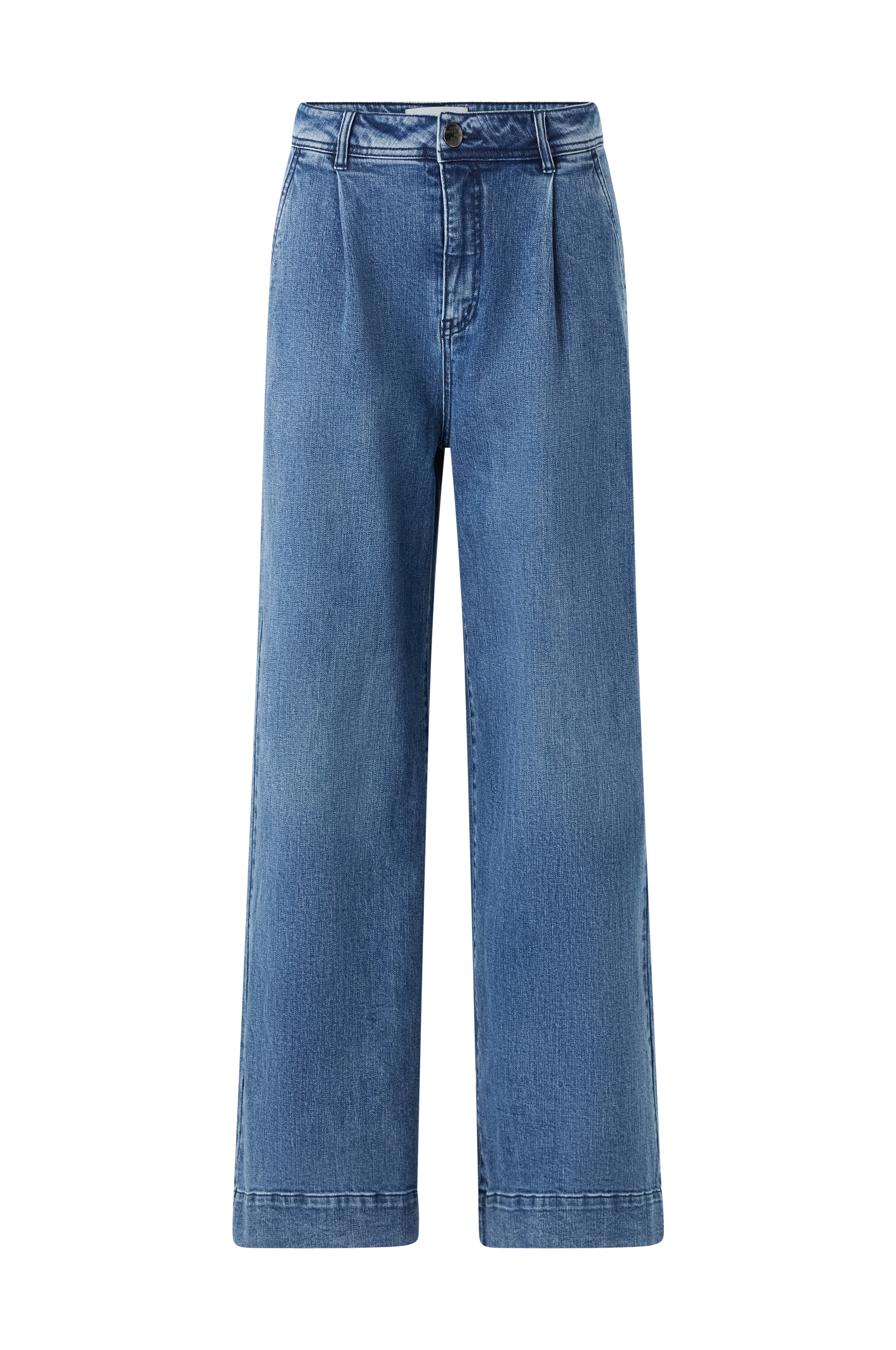 • Brede ben• Sidelommer• Gylp med lynlås• Snydelommer bagpå• Strækdenim• Indre benlængde: 80 cm i størrelse S