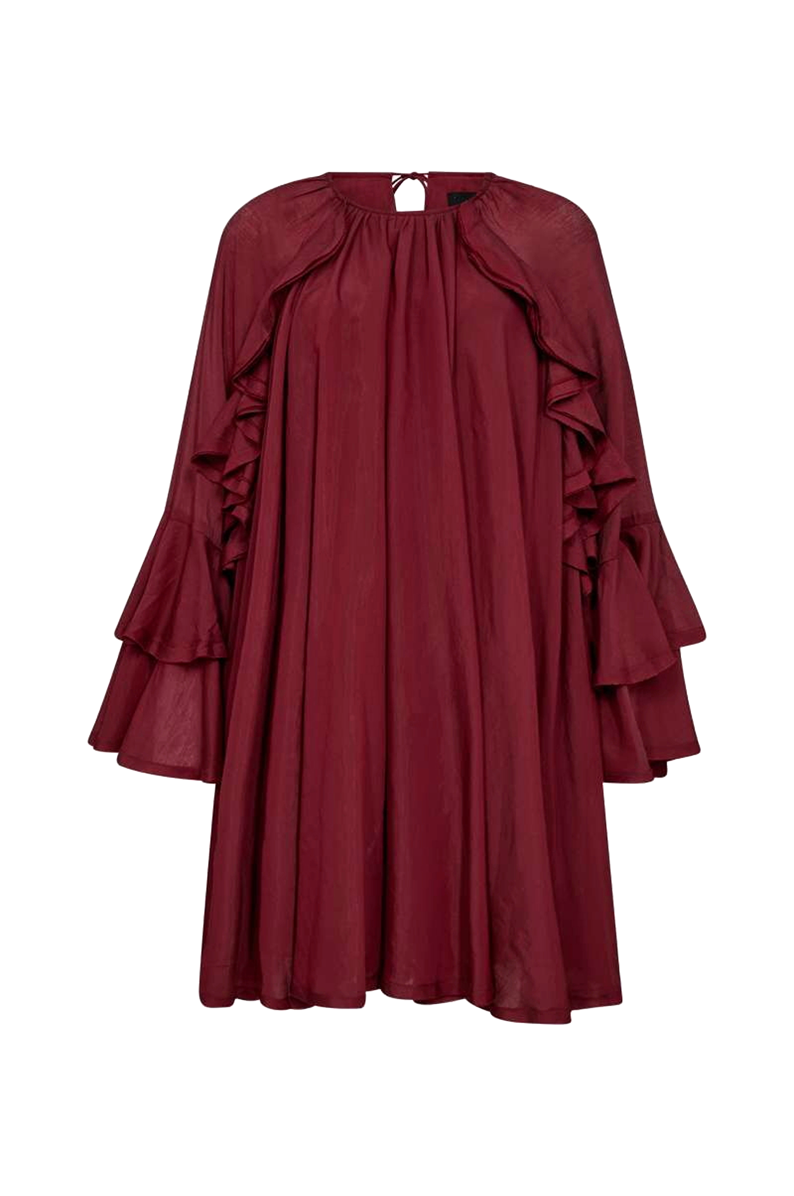 • Skinnende kjole i viskoseblanding• Rund halsudskæring• Slids med bindebånd bagpå• Lange ærmer• Volantdetaljer• Tekstilforing• Afslappet pasform• Længde: 105 cm i størrelse S