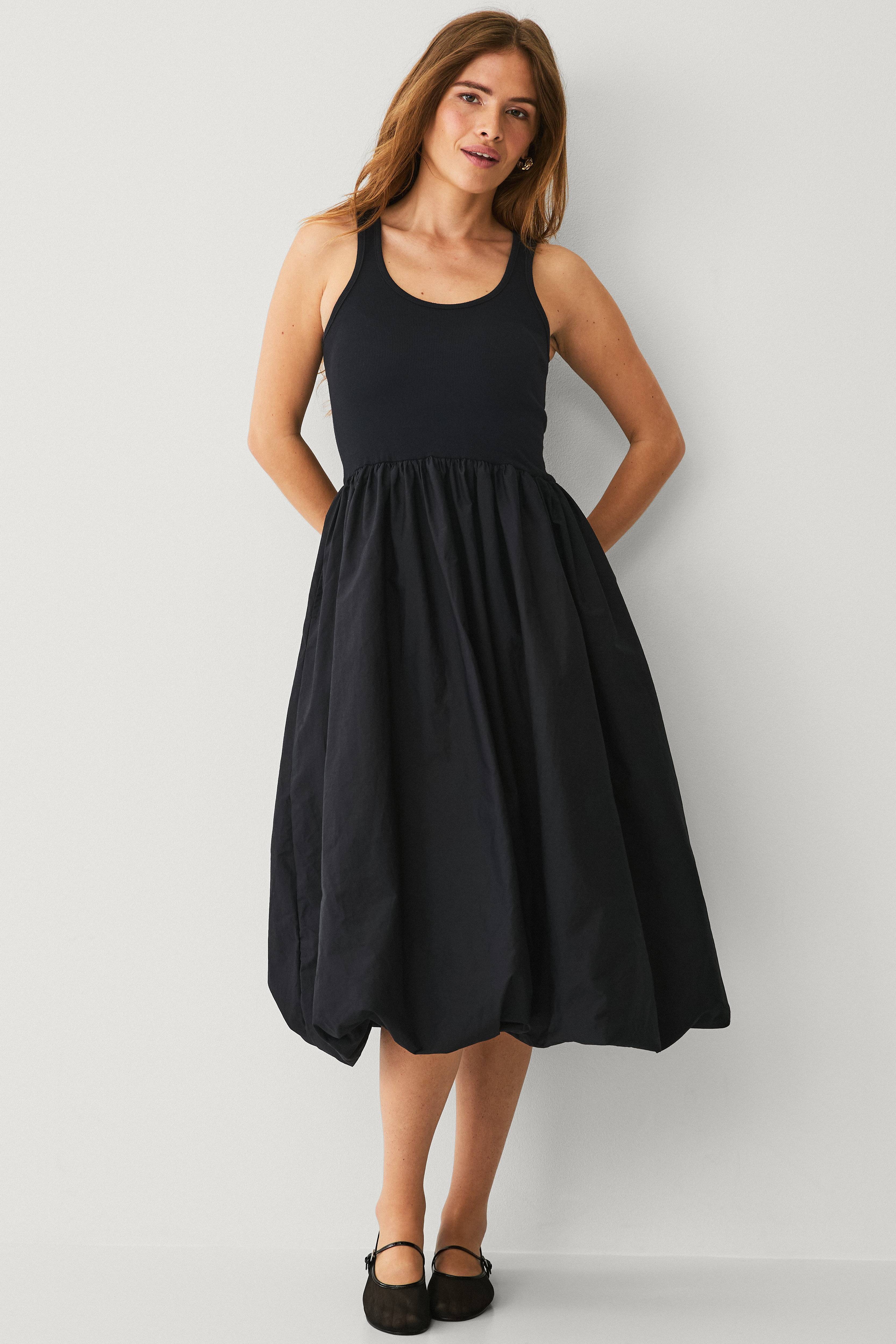 • Kjole med ballonnederdel• Ærmeløst design• Ribbet øvre del• Skjulte sidelommer• Elastik ved nederste kant• Normal pasform• Længde: 125 cm i størrelse S