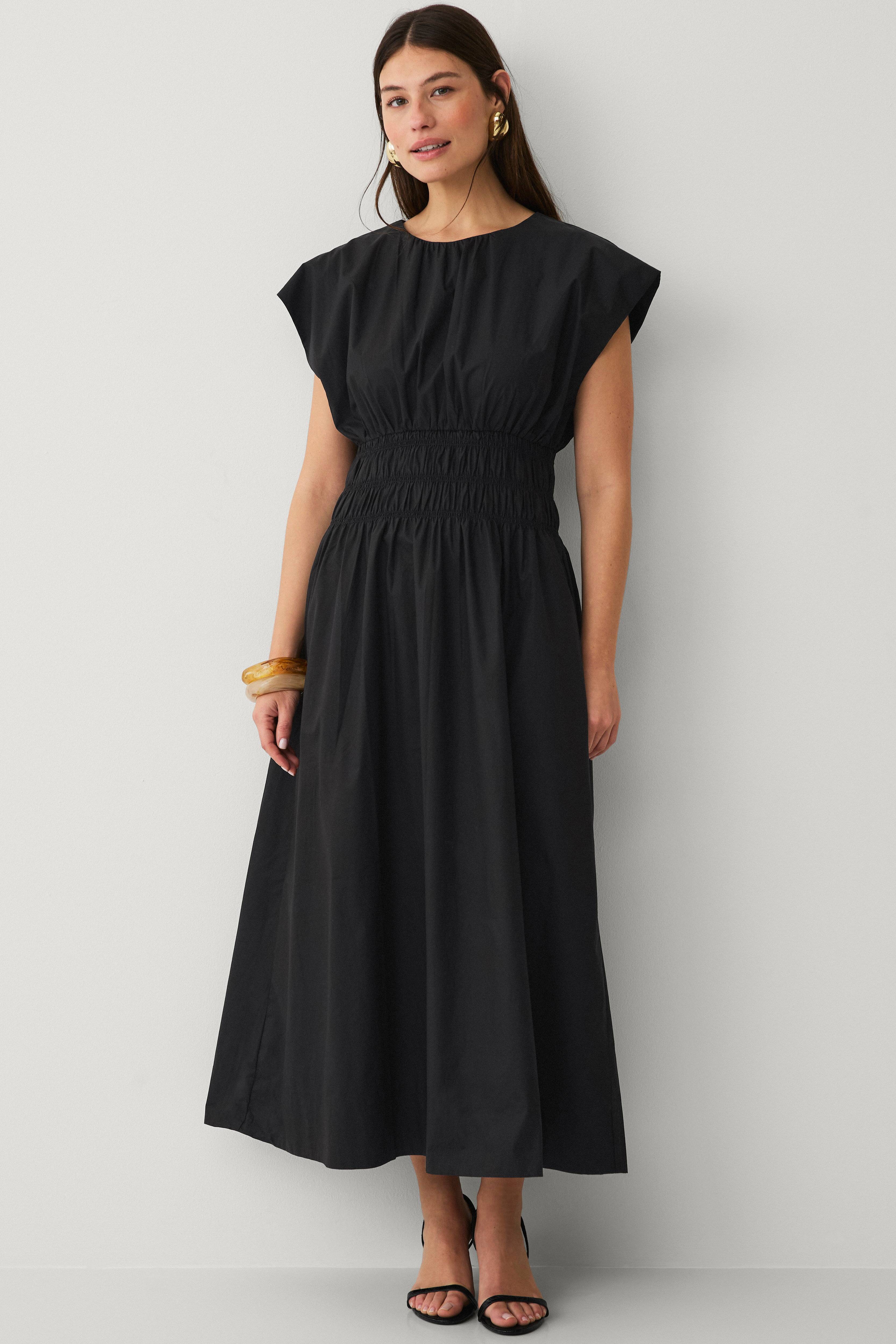 • Figurformede model med elastiksømme ved taljen• Rund hals med samling foran og lynlås i ryggen• Nedsænket skulder• Sidelommer• Længde: 133 cm i størrelse S