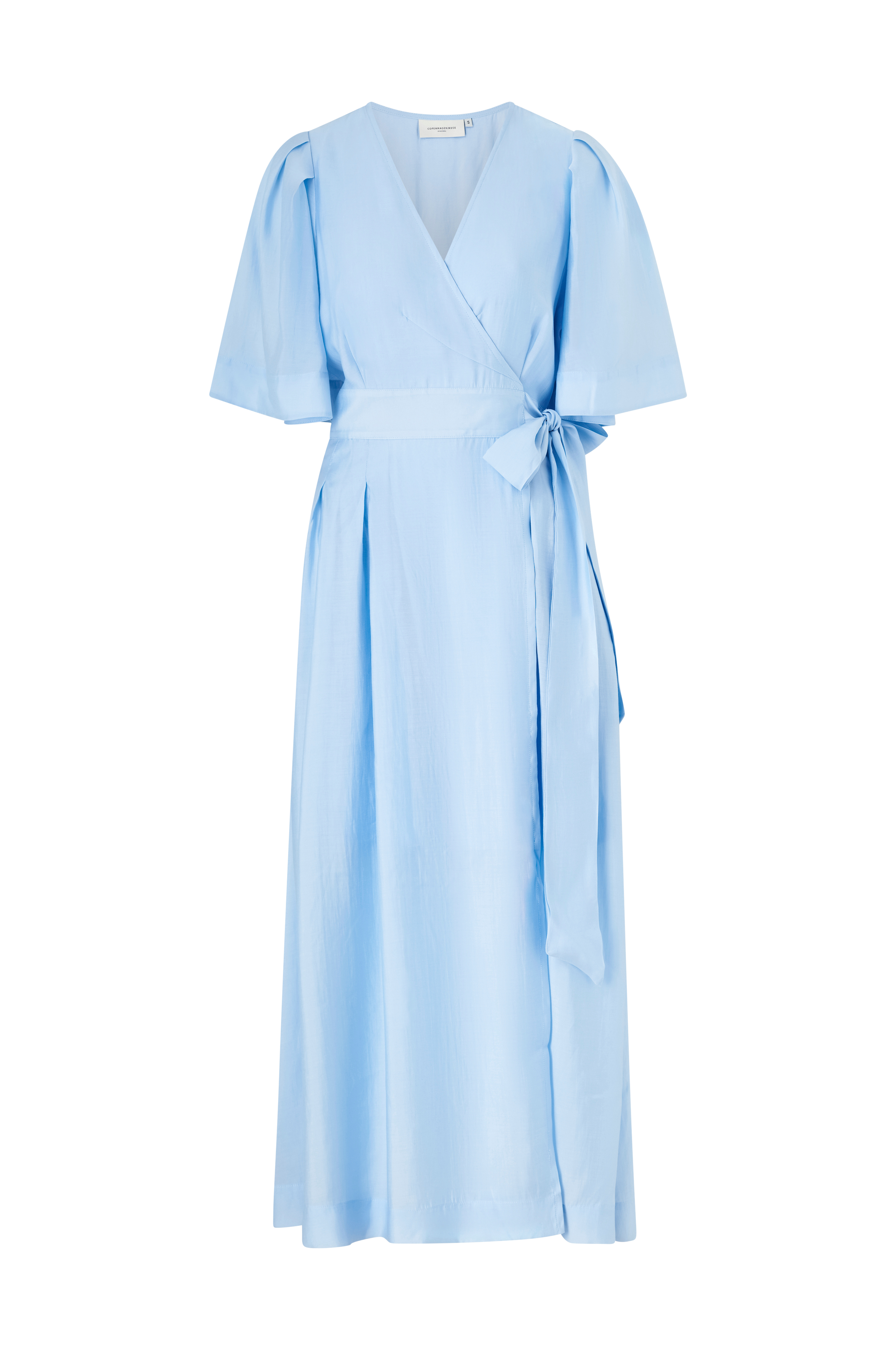 • Lang slå-om kjole• Foret med tekstil model• V-udskæring• Brede ballonærmer• Modfold langs ryggen• Skjulte sidelommer• Normal pasform• Længde: 140 cm i størrelse S