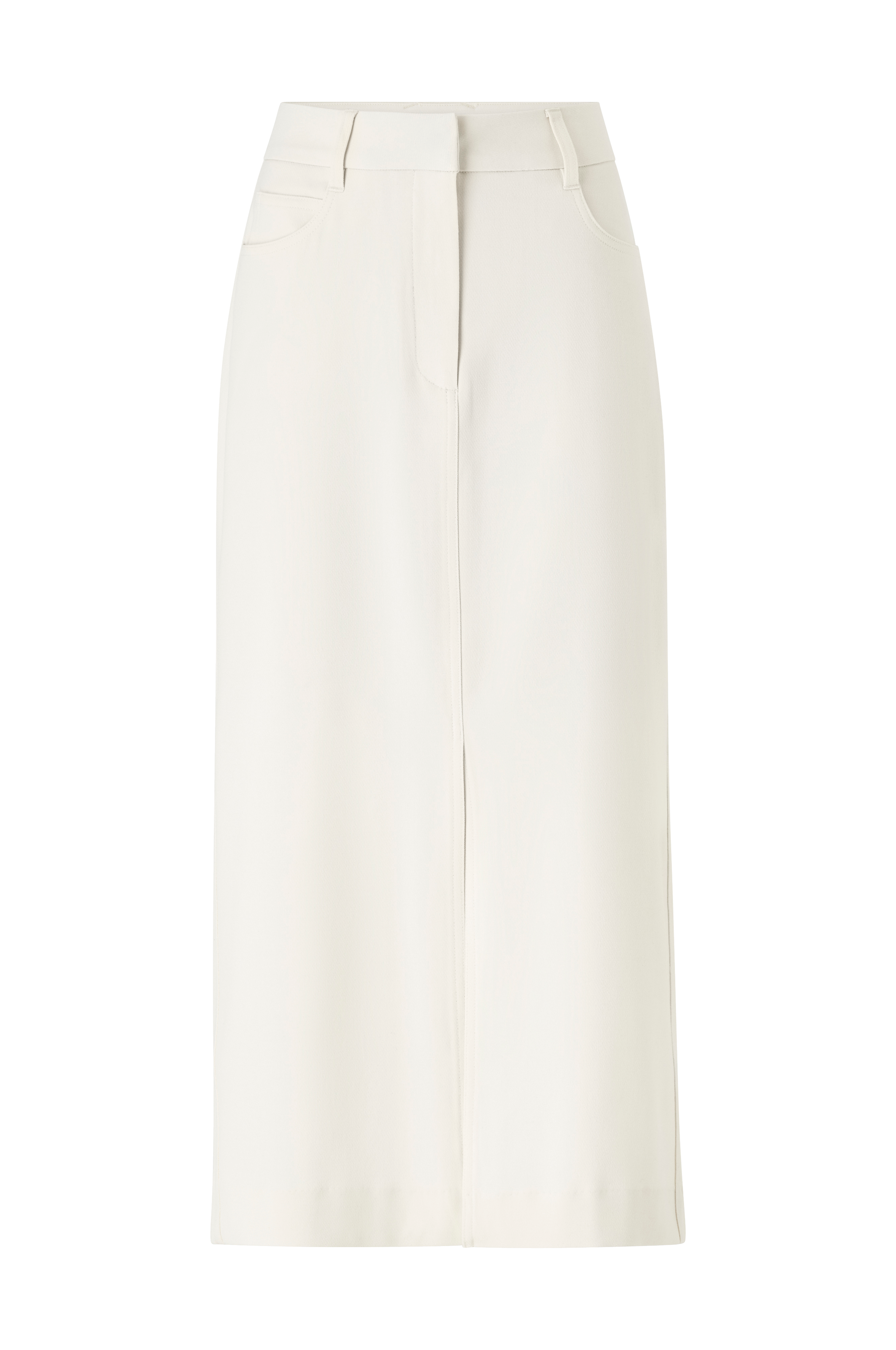 • Vævet, skinnende for• Skjult hægtelukning• Gylp med lynlås• Stropper• Tre lommer foran• Slidser ved fronten og bagved• Længde: 90 cm i størrelse S